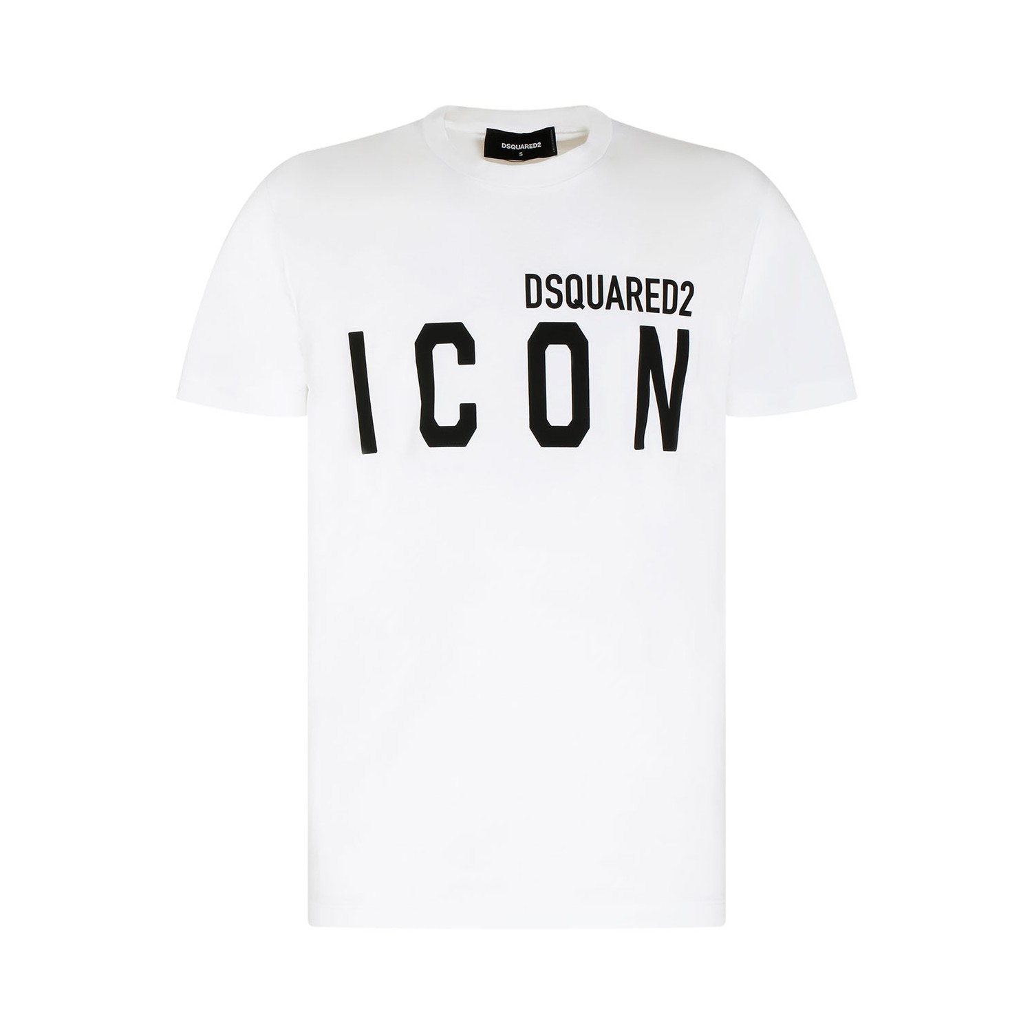 Dsquared2 White Icon Print T-Shirt. White cotton t-shirt, icon print to the front, round neck, short sleeves, straight hem.