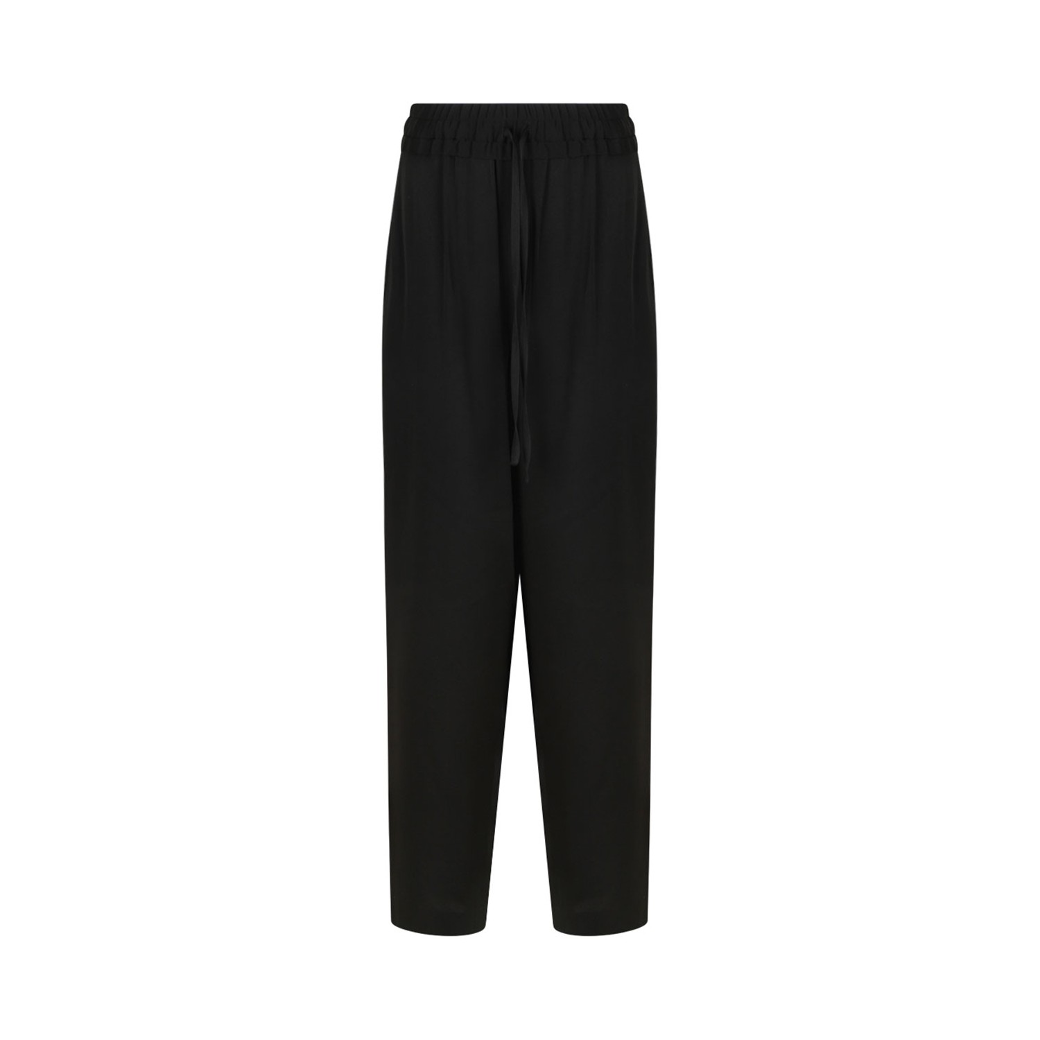 Isabel Marant Black Kendry Trousers. Black trousers with elasticated drawstring waistband, two diagonal pockets to the sides, two rear jetted pockets.