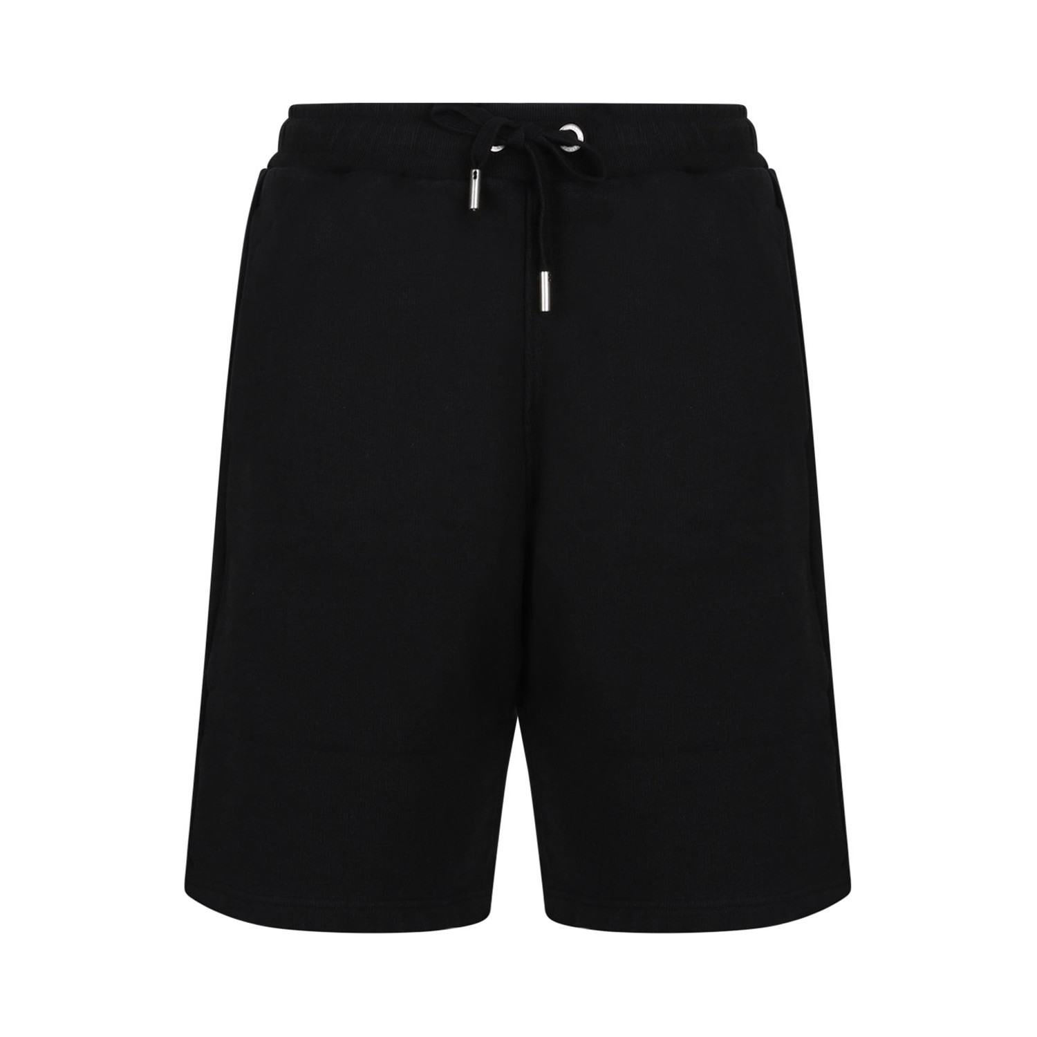 Ami Black Monogram Pattern Shorts. Black stretch cotton Ami de Coeur shorts, distinctive Ami de Coeur monogram pattern, elasticated drawstring waist, two side welt pockets, two back patch pockets, knee length.
