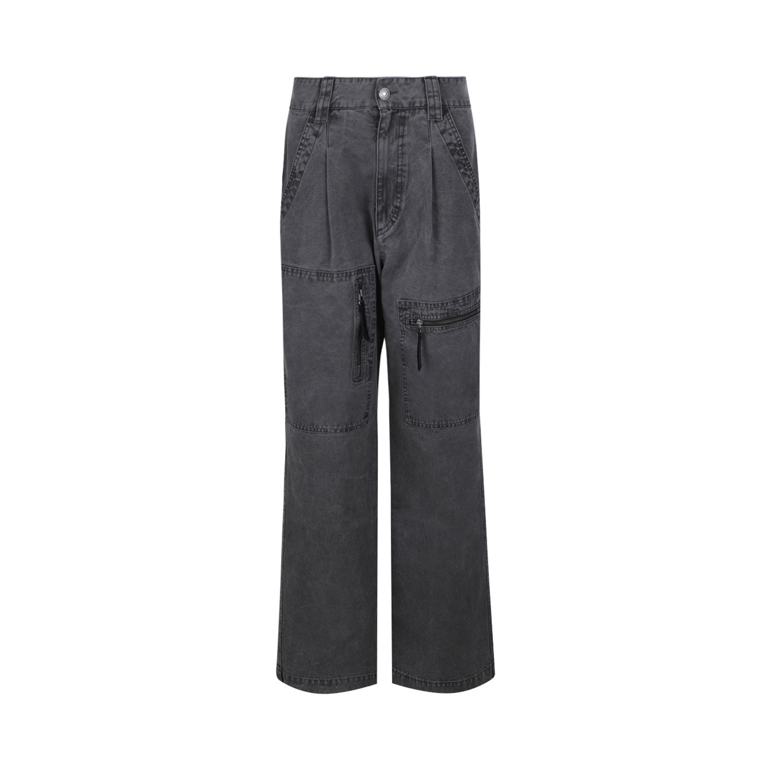 Isabel Marant Etoile Kanna Cargo Jeans. Faded black cotton cargo jeans with concealed fly and button fastening. Two side slit pockets, multiple zip-fastening pockets, two rear patch pockets.