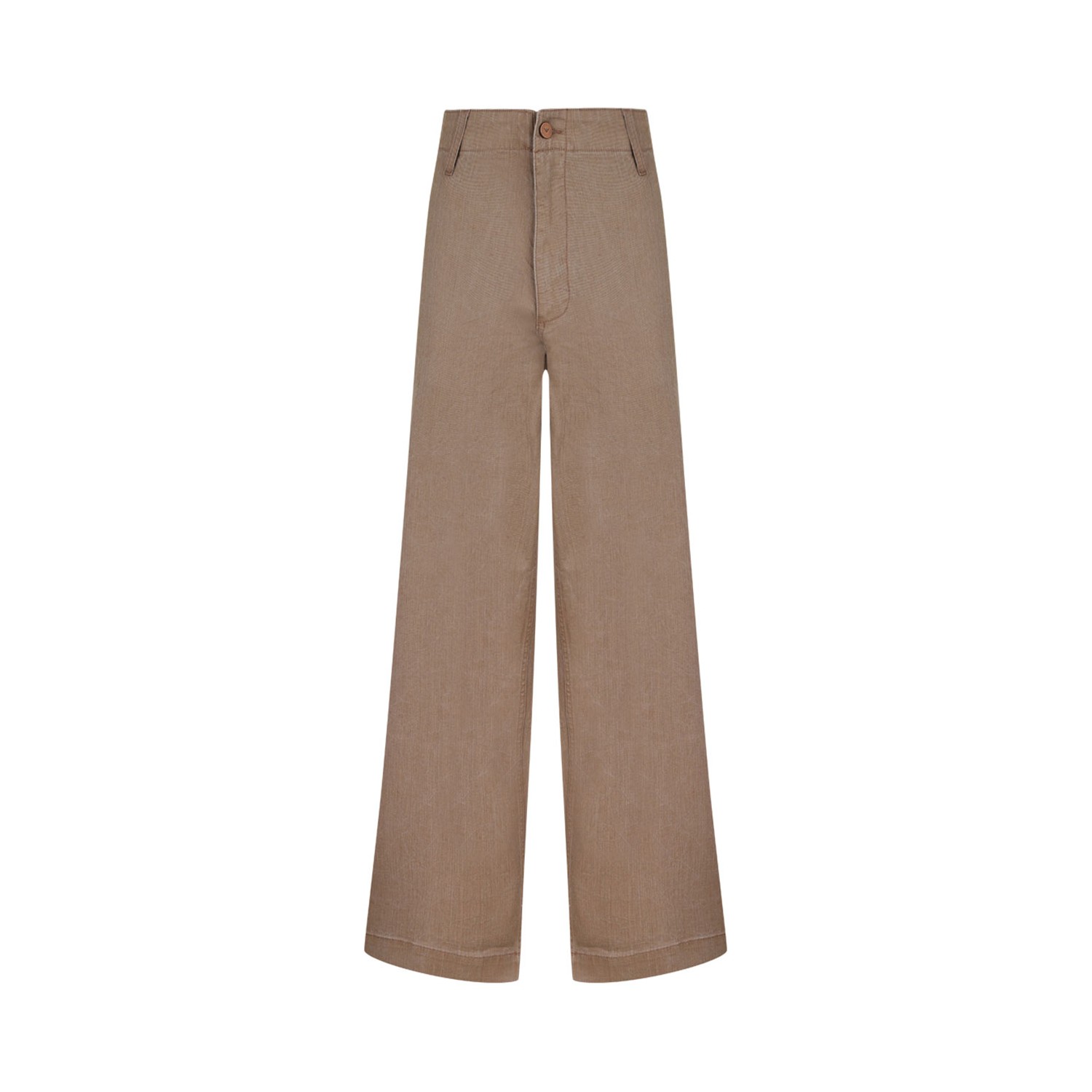 Emporio Armani Light Brown Straight Trousers. Light brown organic cotton trousers with front button and zip fastening, belt loops, two side inset pockets, two rear patch pockets.