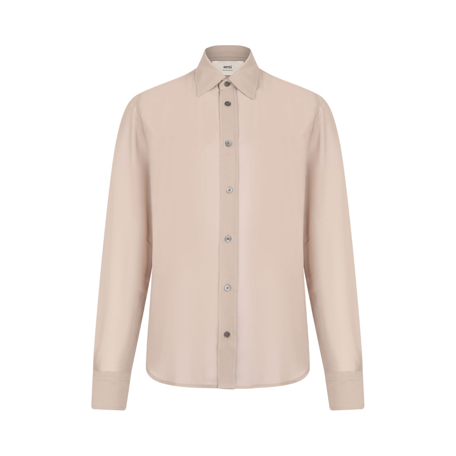 Ami Paris Ash Semi Sheer Shirt. Ash semi sheer shirt with front button placket, buttoned cuffs, classic collar, long sleeves.
