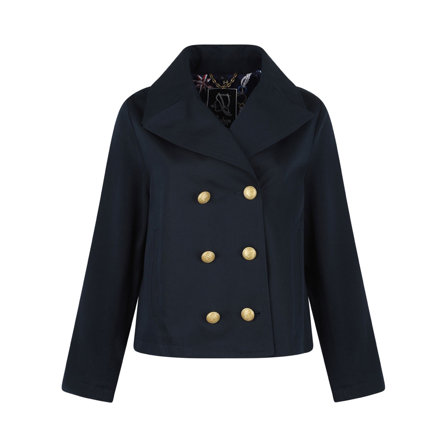 Sealup Navy Blue Lined Peacoat. Navy blue lined peacoat, double breasted, original sailor buttons in brass, welt pockets.