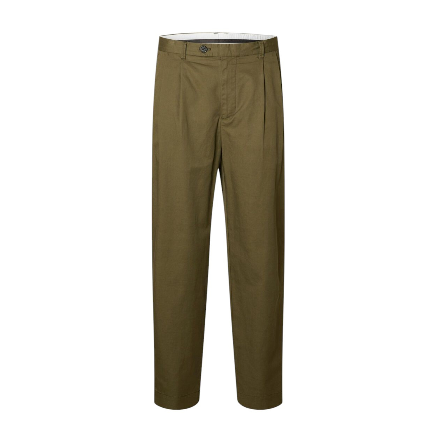 Selected Kalamata Short Cut Trousers. Kalamatra linen and cotton trousers with mid waist, zip-up fly with button fastening. Extended waistband, belt loops, side pockets. Pleated effect at front, turned-up cuffs, cropped length.