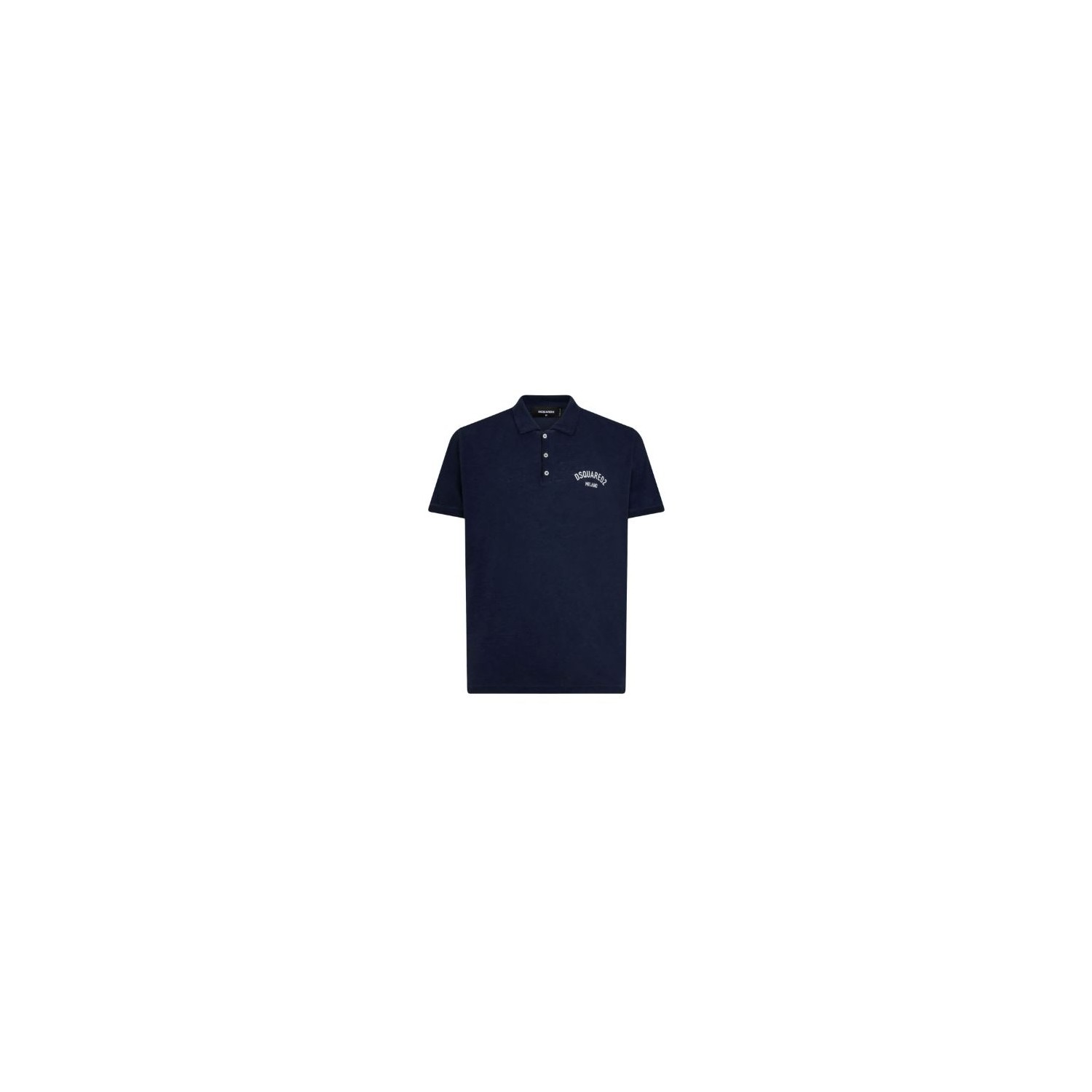 Dsquared2 Navy Blue Polo Shirt. Navy blue cotton blend polo shirt, logo print to the front, front button fastening, polo collar.
