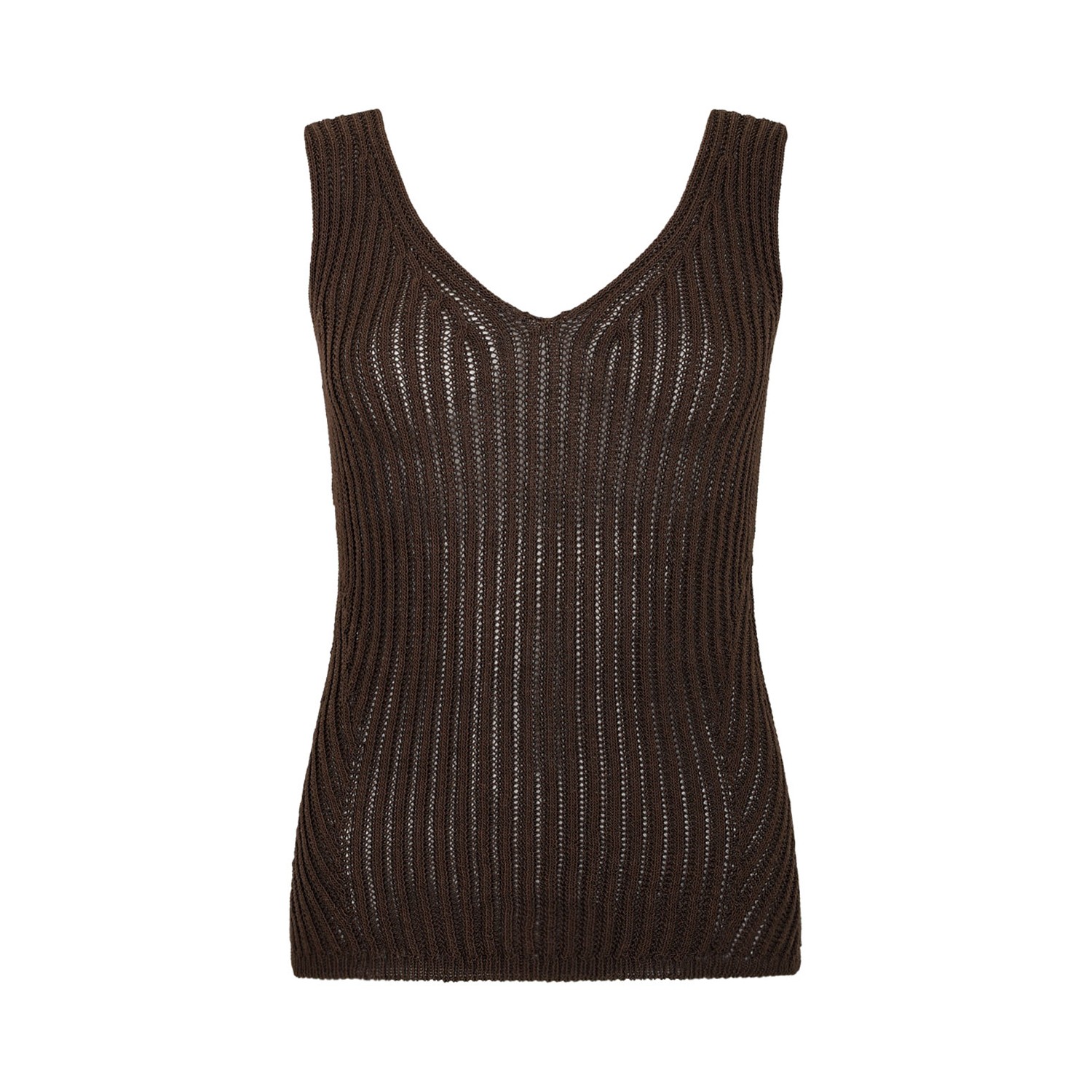 Max Mara Coffee Brown Top. Coffee brown cotton top, sleeveless, V neck.