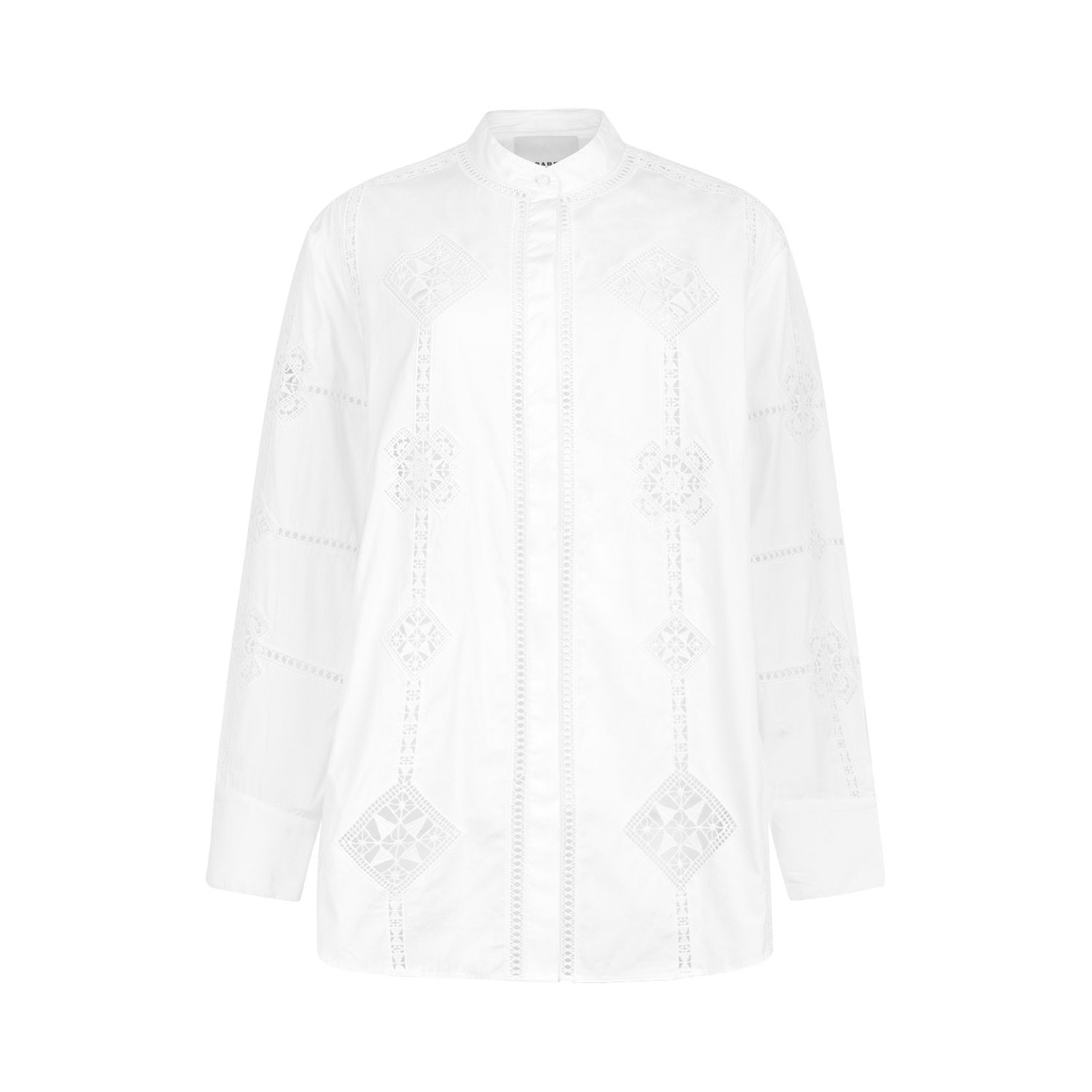 Isabel Marant White Soeline Shirt. White cotton shirt with concealed front button fastening, buttoned cuffs, embroidered motif, long sleeves.