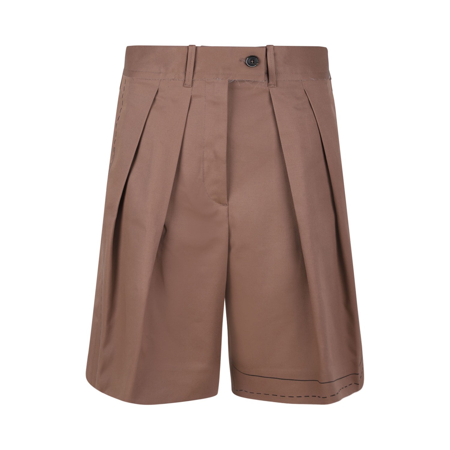 Nine In The Morning Brown Bermuda Pants. Brown bermuda pants with front button and zip fastening, belt loops, two pences. Two front pockets and two rear pockets, logo label to the rear.