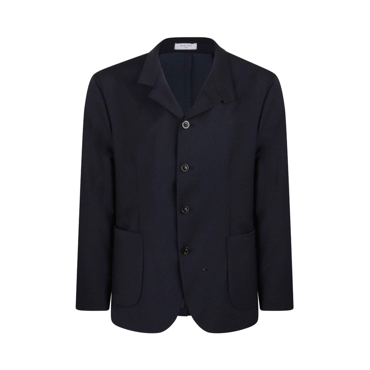 Boglioli Dark Blue Blazer. Dark blue blazer with front button fastening, front pockets and long sleeves.