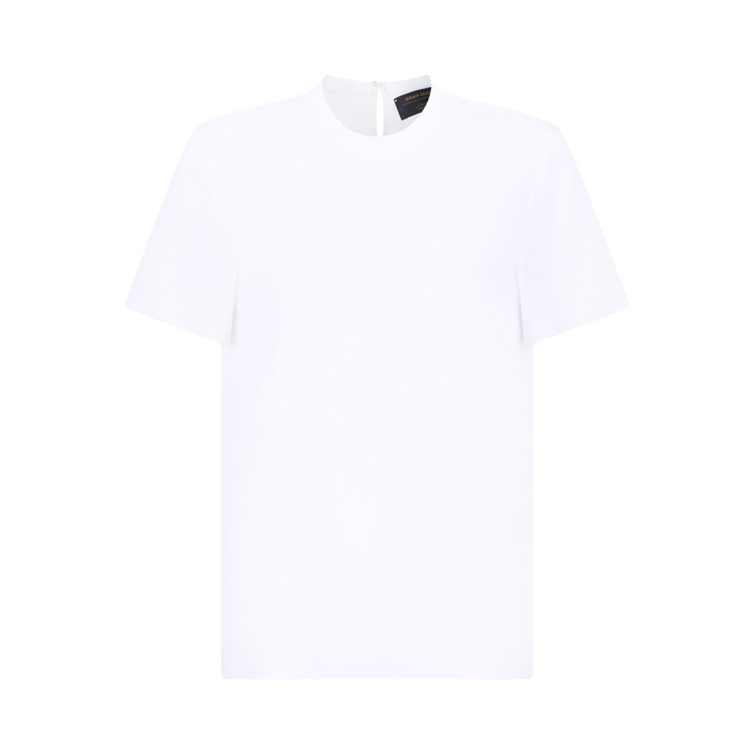 Gran Sasso White Fine Knit T-Shirt. White fine knit t-shirt with single rear button fastening, crew neck, short sleeves and straight hem.