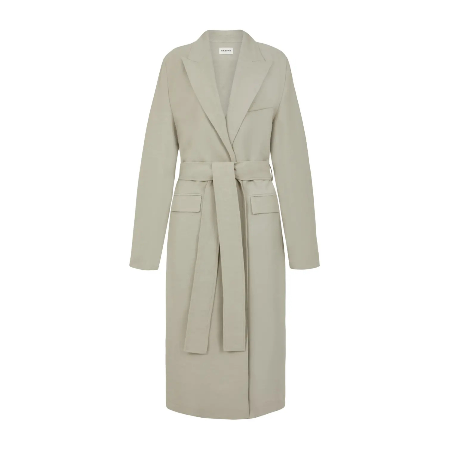 P.A.R.O.S.H. Raisa Oversized Trench Coat. Oversized trench coat with belt, V neck, long sleeves, two pockets.