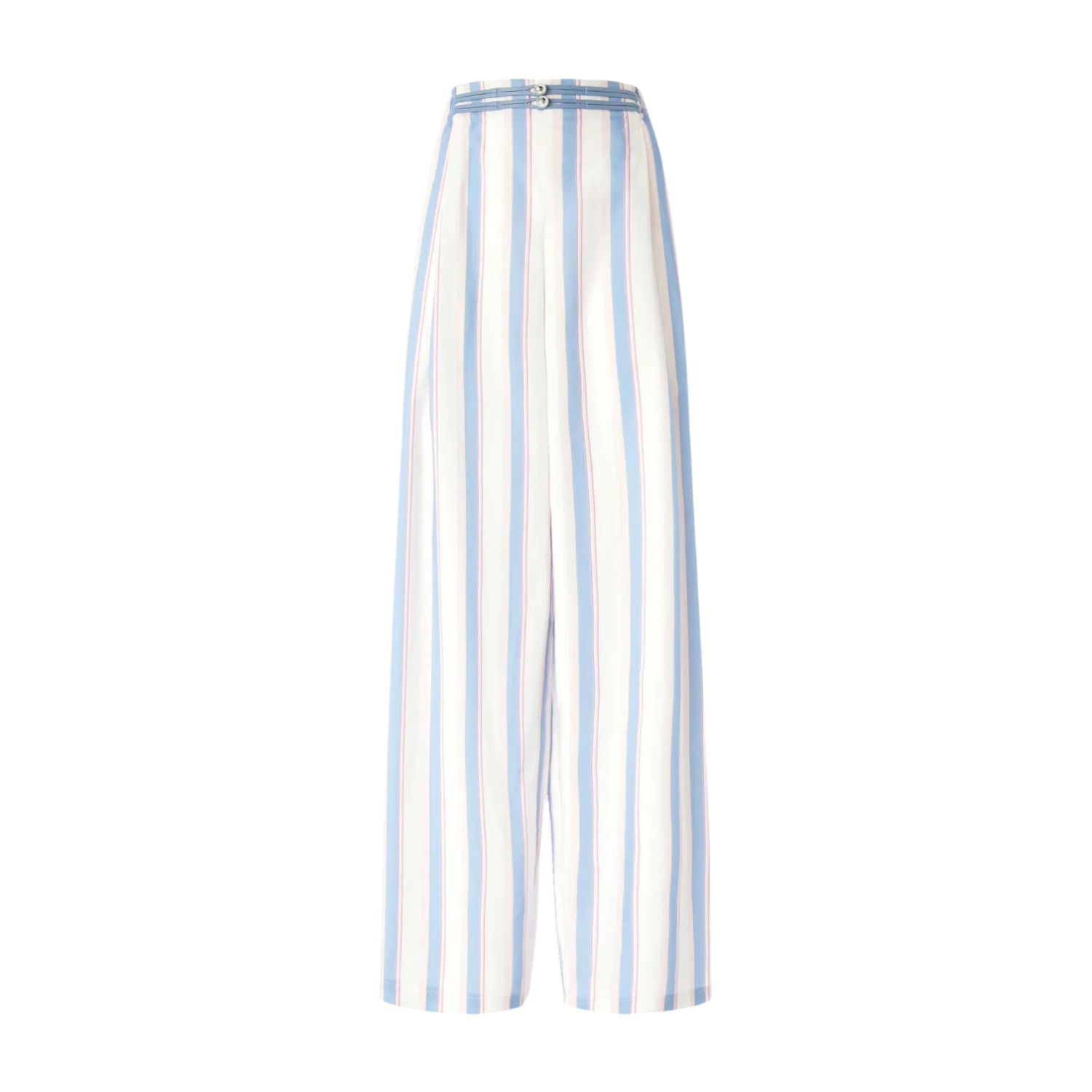 Genny Wide Pants. These wide leg trousers from Genny are designed to offer elegance and comfort. Featuring a regular waist with an elastic waistband and decorated with straps and buttons on the front, they add a chic detail to the design.