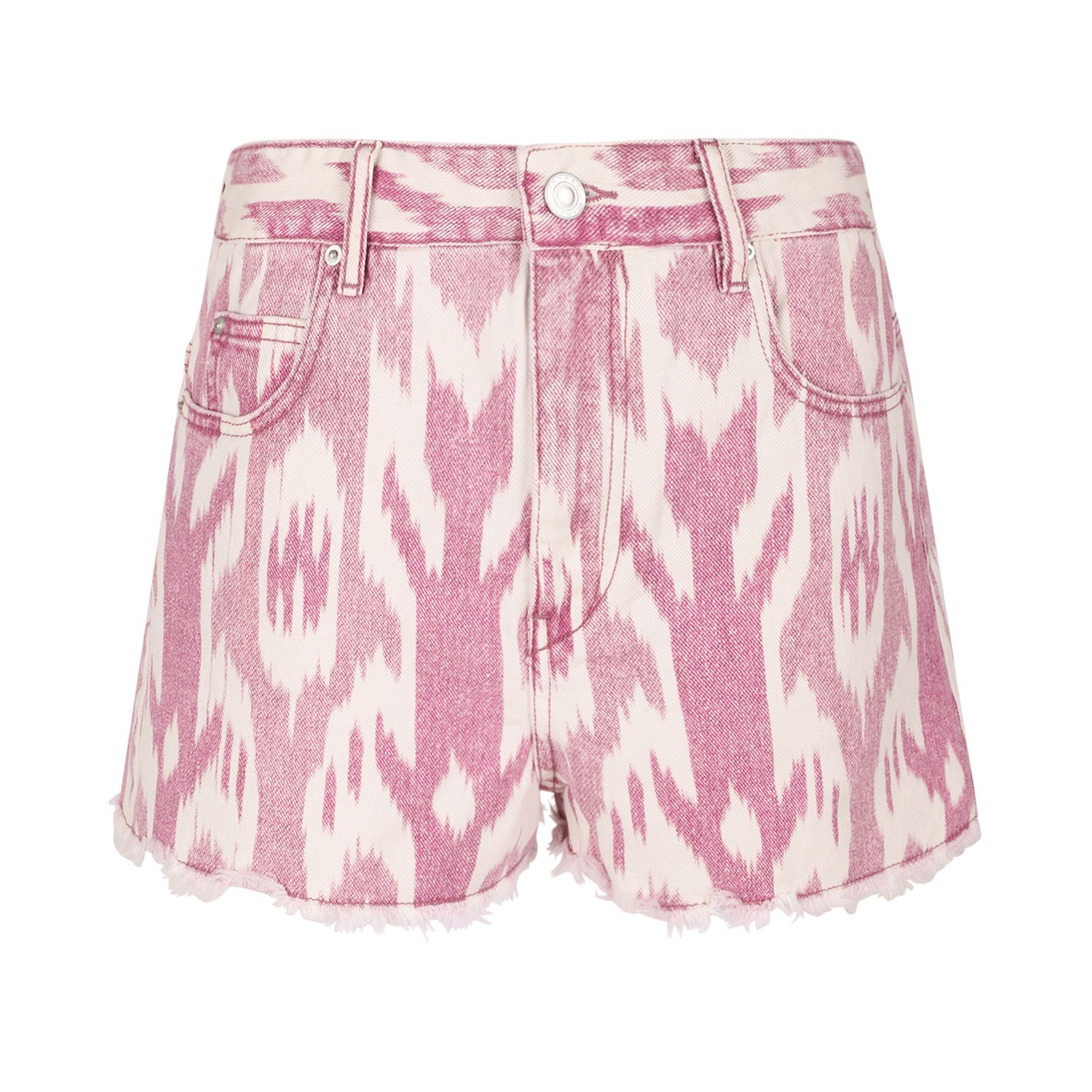 Isabel Marant Abstract Pattern Print Short. Pink abstract pattern print shorts with front button fastening, classic five pockets, belt loops, thigh-length.