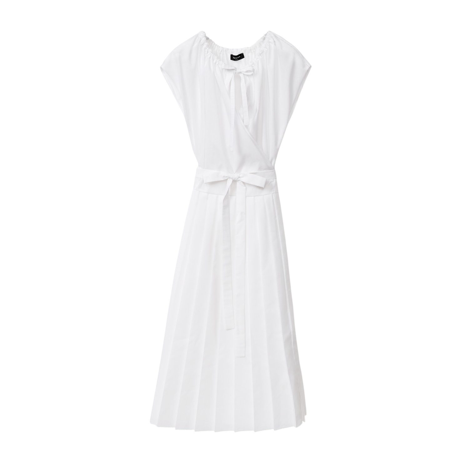 Fabiana Filippi White Midi Dress. White midi dress with short sleeves, bow detail to the front, belted waistband.