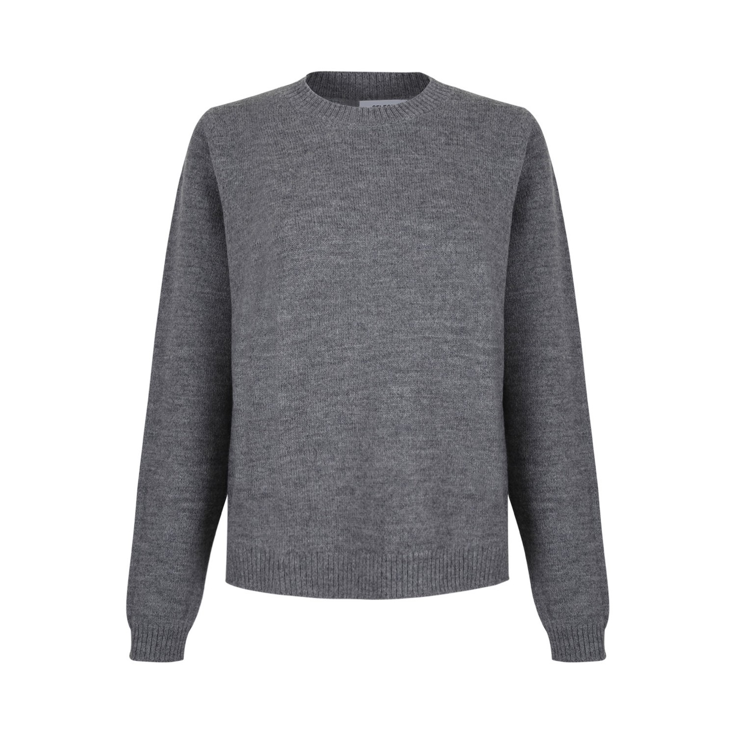 Selected Medium Grey Melange Jumper. Medium grey melange wool jumper, ribbed round neck, long sleeves, ribbed cuffs and hem.