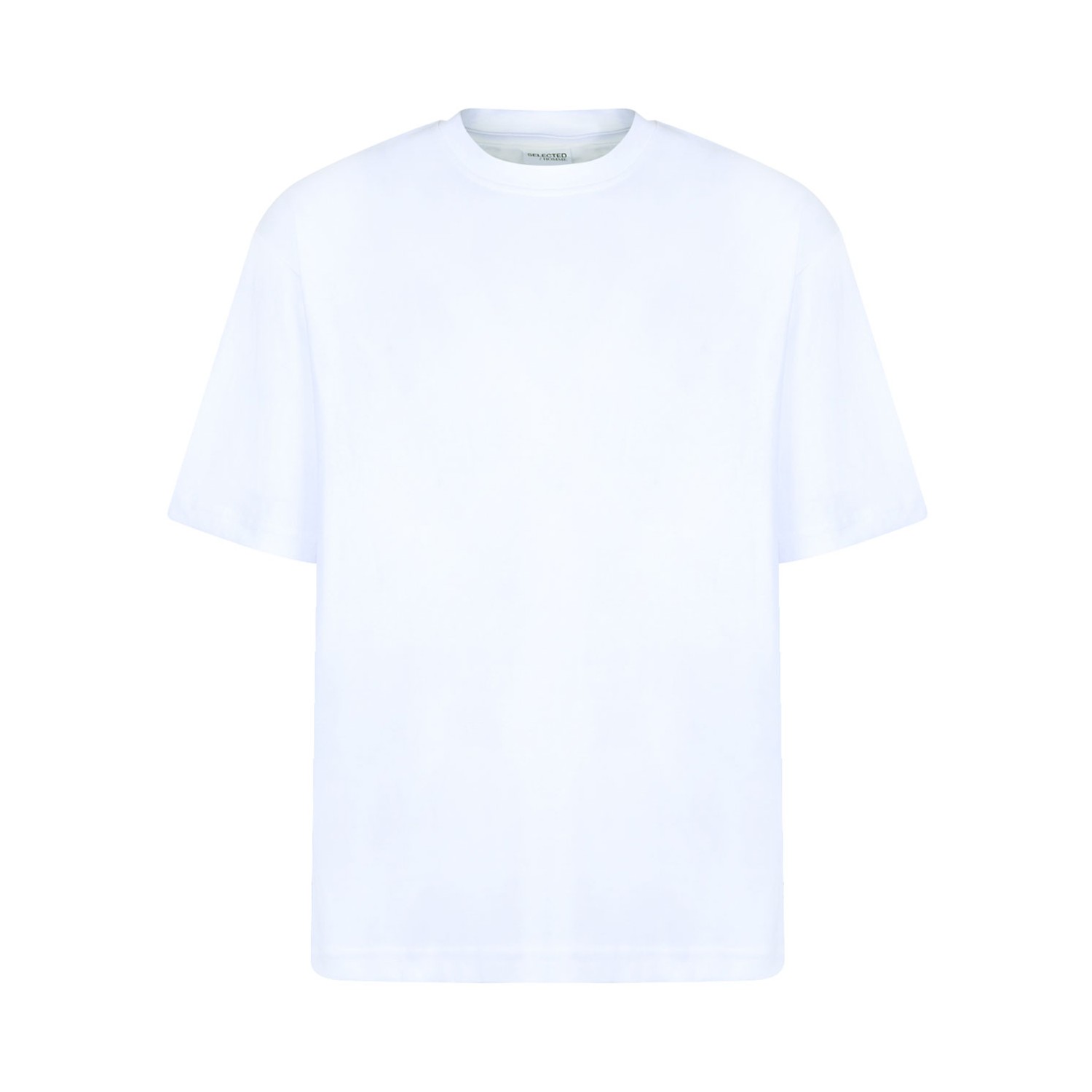 Selected White T-Shirt. White organic cotton t-shirt, crewneck, dropped shoulders, short sleeves.