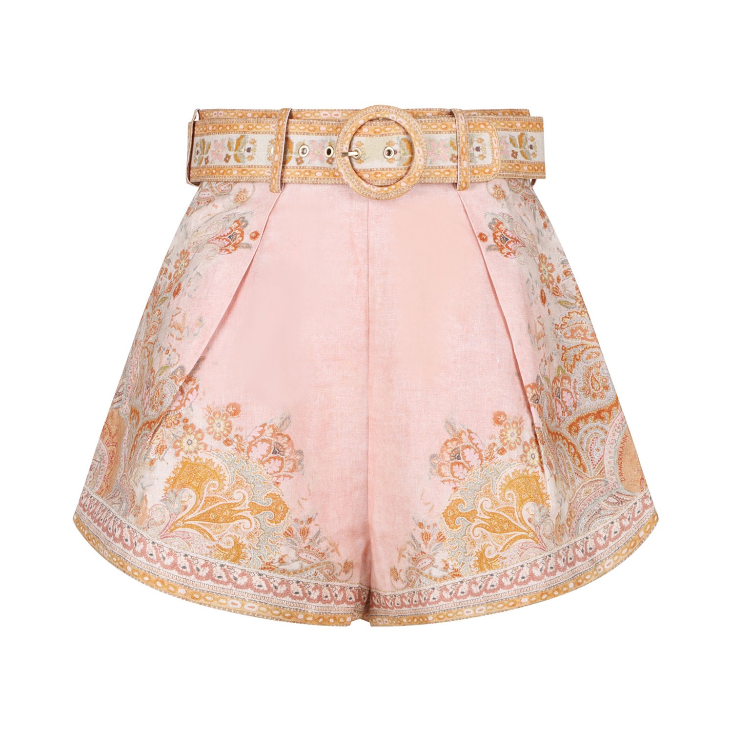 Zimmermann Acacia Tuck Short. Multicolour linen short featuring side seam pockets and self covered removable belt.