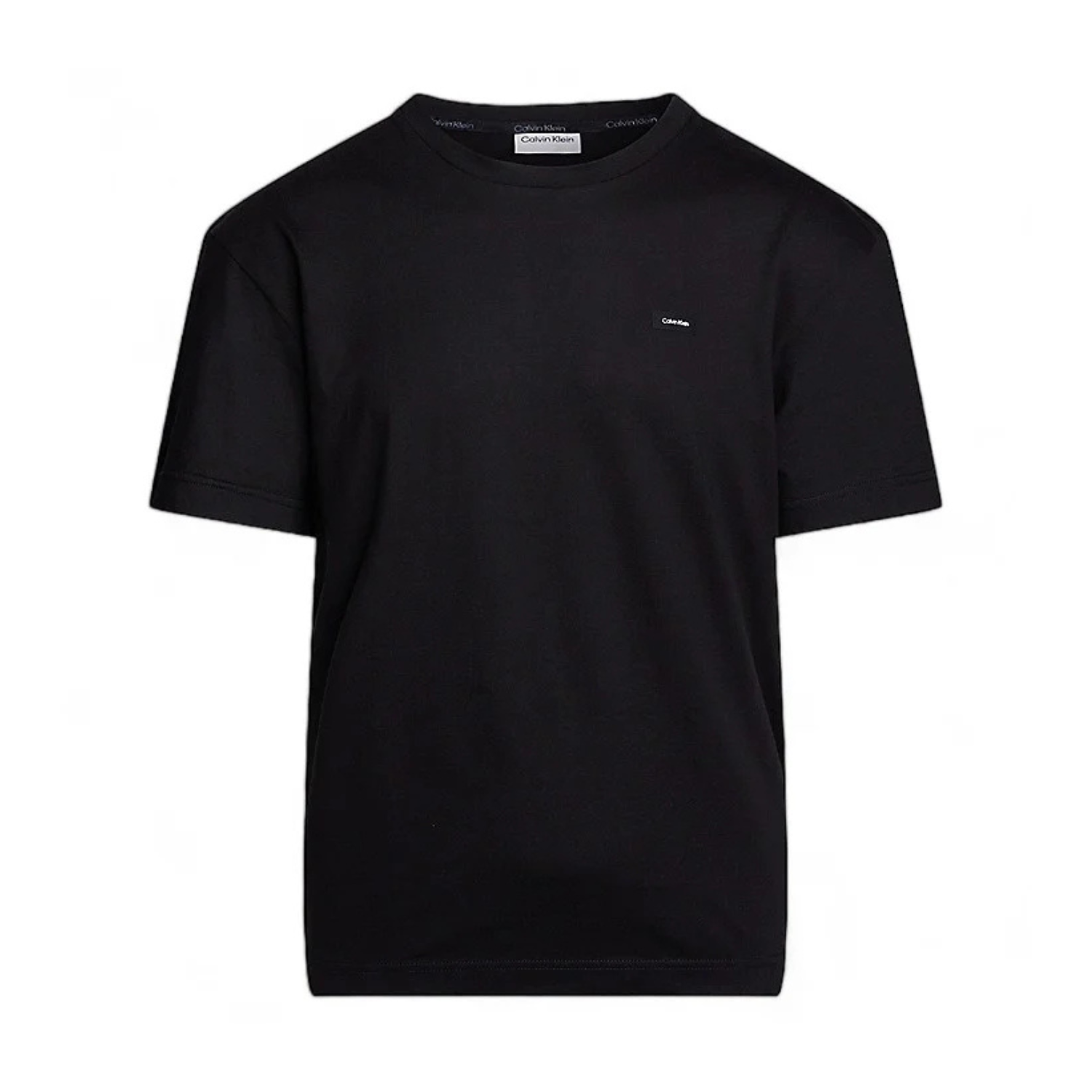 Calvin Klein Black Logo Patch T-Shirt. Black cotton t-shirt with logo patch to the front, crew neck, short sleeves.