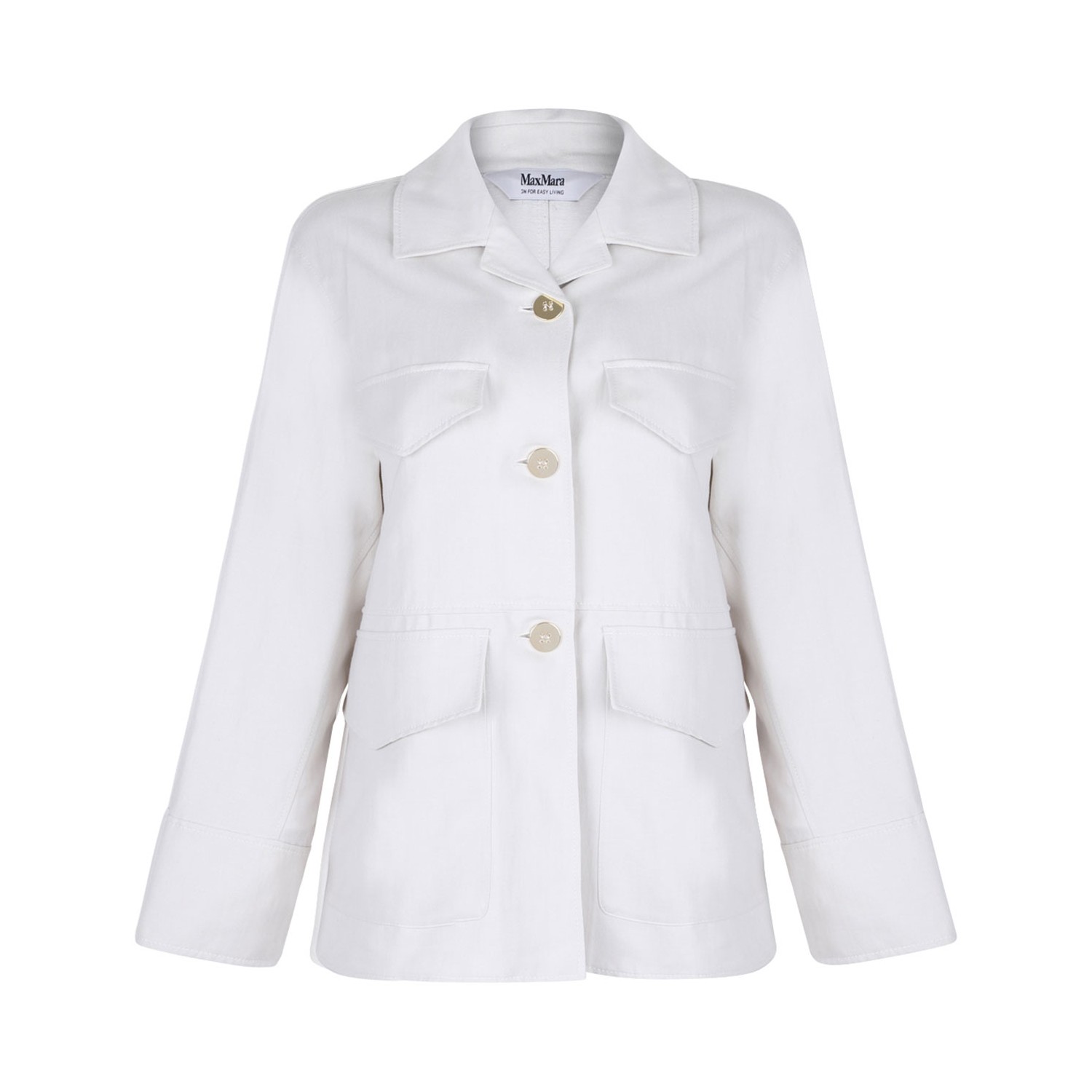 Max Mara Ecru Ginny Jacket. Ecru cotton and linen jacket with classic collar, front button fastening, four front pockets, long sleeves.