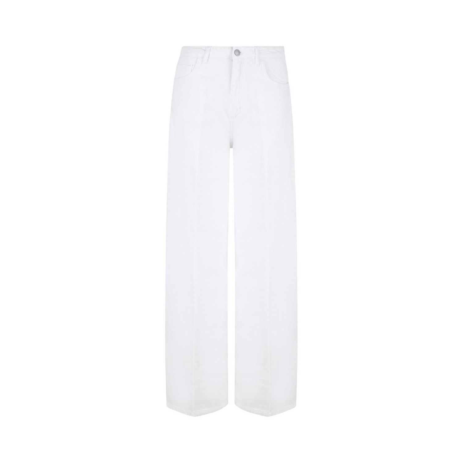 Merci White Regular Fit Jeans. White cotton jeans with front and button fastening, belt loops, classic five pockets, logo label to the rear.