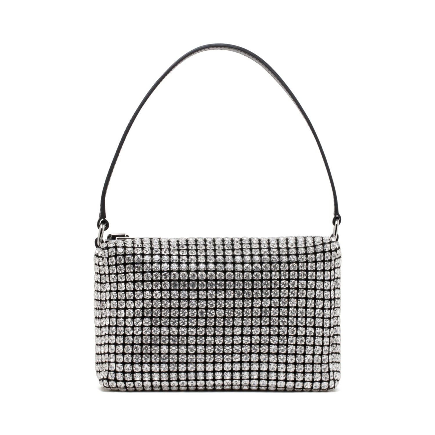 Alexander Wang Crystal Wangloc Clutch Bag. Black and silver crystal clutch bag, rhinestone embellishments, rectangular shape, single flat top handle, top zip fastening.
