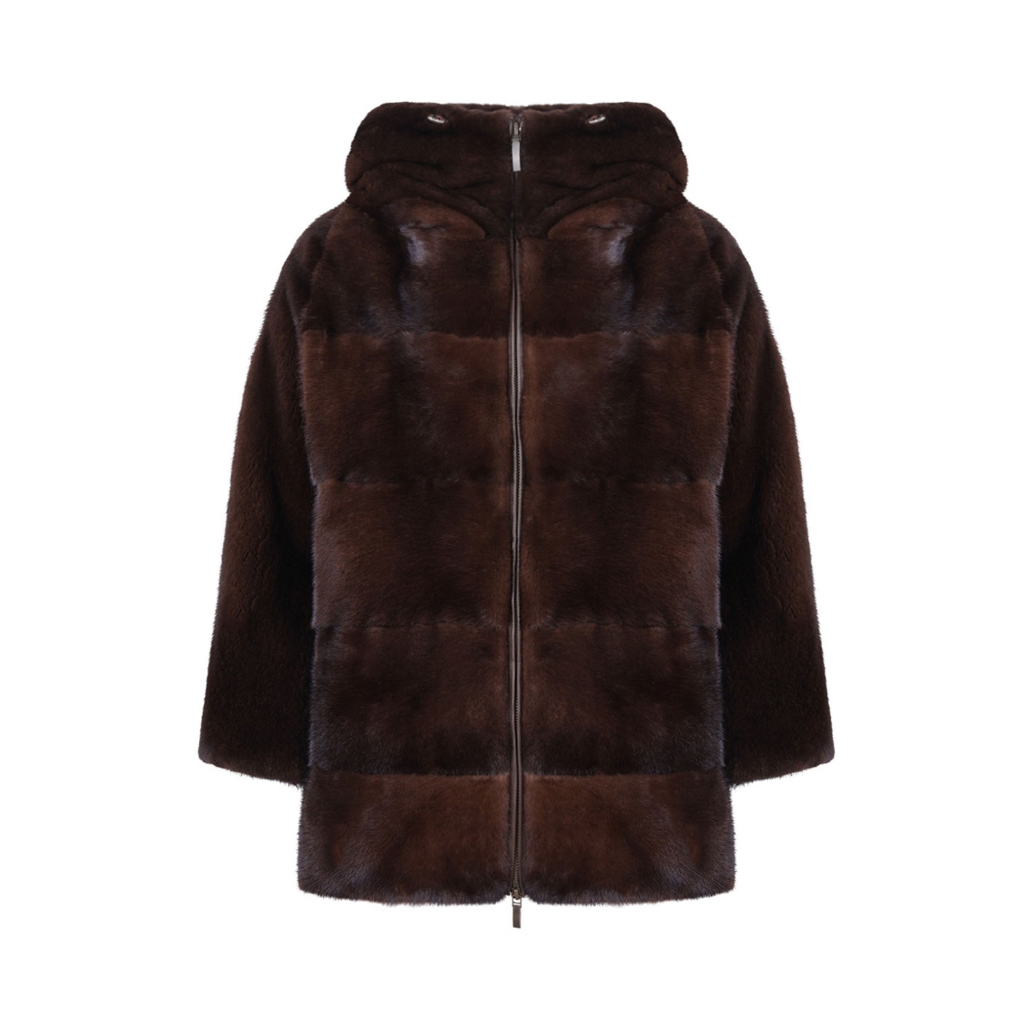 Antonio Arnesano Dark Brown Mink Fur Coat. Luxurious dark brown mink fur coat by Antonio Arnesano, crafted for exceptional softness and comfort. This elegant piece features a cozy hood, perfect for staying warm with a touch of sophistication, and a front zip closure for a sleek, modern fit. The three-quarter sleeves add a contemporary and stylish flair, offering a unique and versatile silhouette. The plush, velvety texture of the fur provides a soft, inviting feel, making this coat ideal for special occasions or elevating everyday ensembles. A perfect blend of timeless elegance, warmth, and refined luxury.