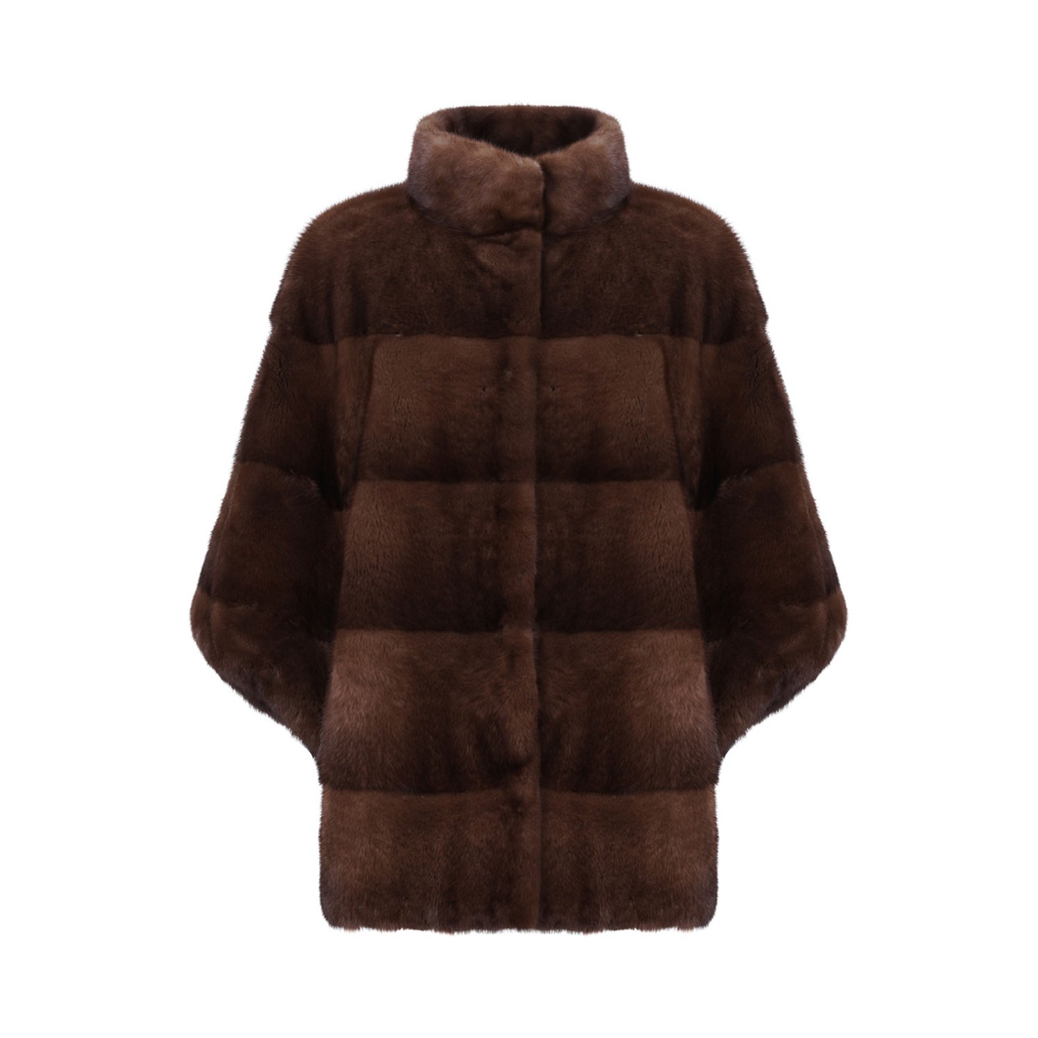 Antonio Arnesano Brown Mink Fur Coat with High Collar. Sophisticated brown mink fur coat by Antonio Arnesano, designed for exceptional softness and luxurious comfort. This elegant piece features a high collar that provides both warmth and a polished, refined look, and a front closure for a sleek, secure fit. Three-quarter sleeves add a contemporary and stylish touch, creating a unique and versatile silhouette. The plush, velvety texture of the mink fur delivers a soft, inviting feel, making this coat ideal for both special occasions and elevating everyday ensembles. A perfect blend of timeless elegance, superior craftsmanship, and modern luxury.