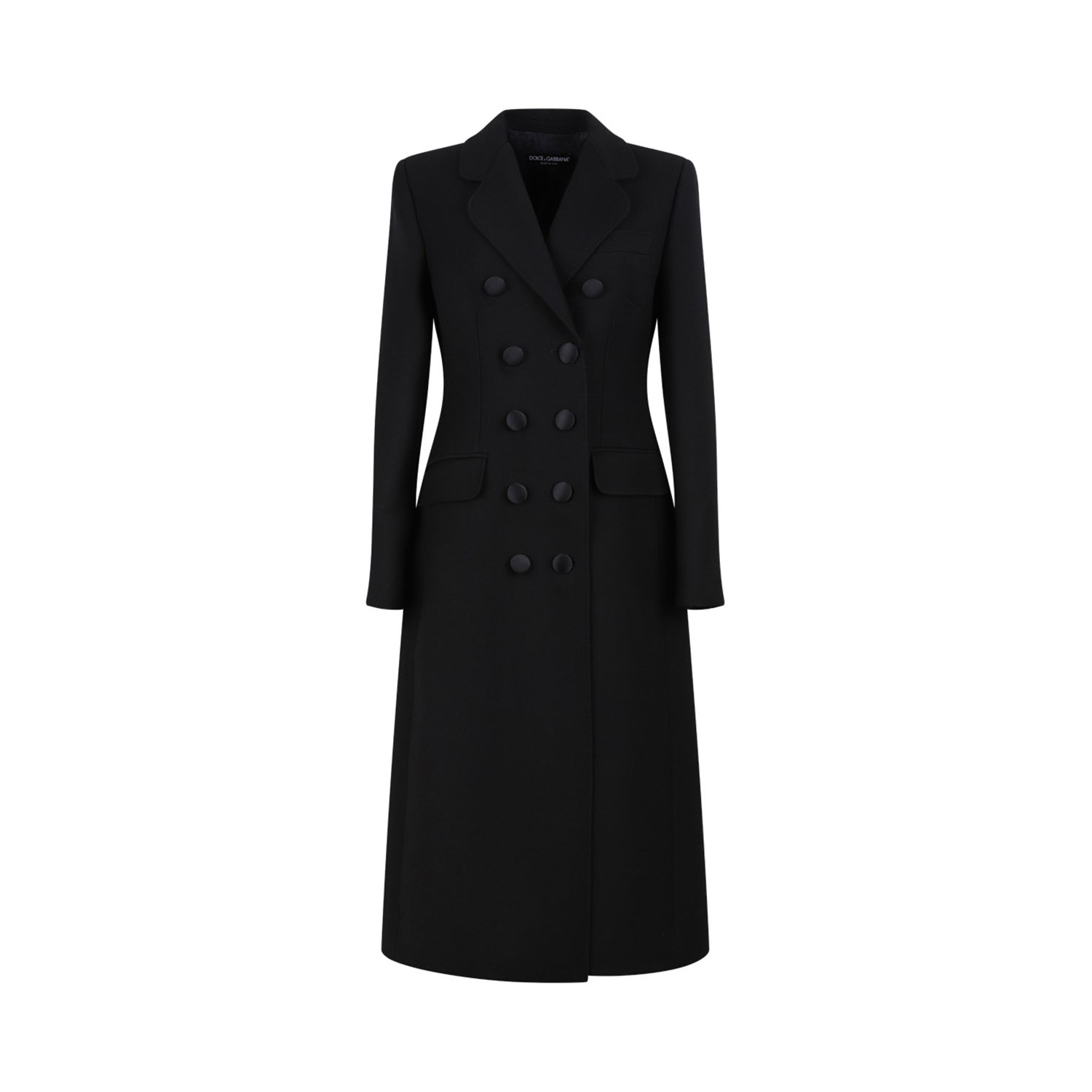 Dolce & Gabbana Black Double-Breasted Blazer. Black virgin wool blend blazer with long sleeves, double-breasted button fastening, peak lapels and two side flap pockets.