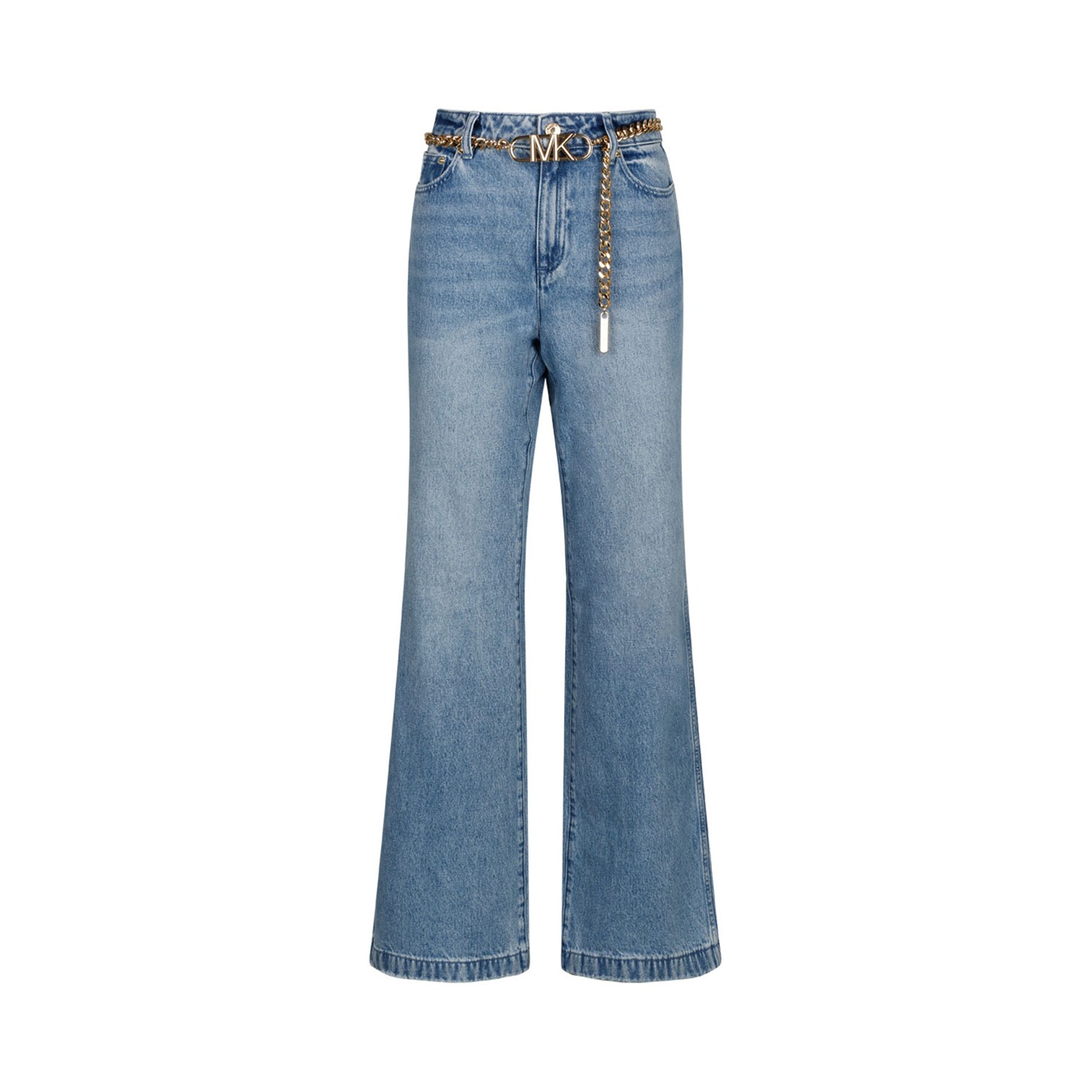 Michael Kors Blue Cotton Jeans. Blue cotton jeans, classic five pocket, low waist, belt loops, zip and button closure, metal logo monogram, flared leg and straight hem.