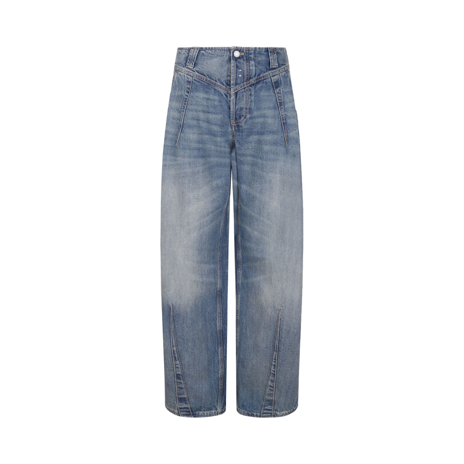 Alexander McQueen Indigo Blue Whiskering-Effect Jeans. Indigo blue cotton jeans with concealed fly and button fastening. Two diagonal pockets to the sides, two rear patch pockets and belt loops.