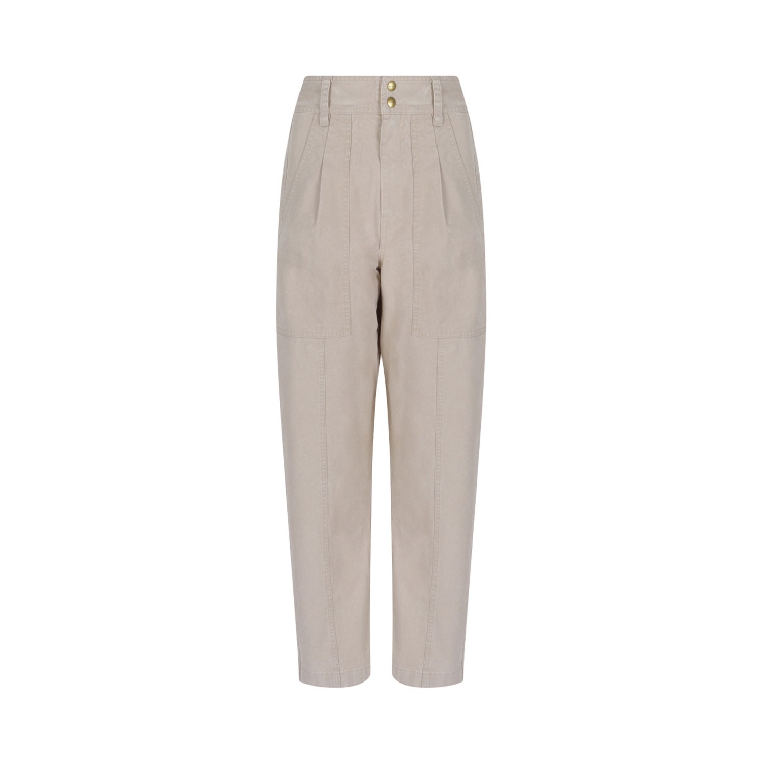 Isabel Marant Ecru Pleated Jeans. Ecru organic cotton blend pleated jeans with side pockets, button fastening and central seam.