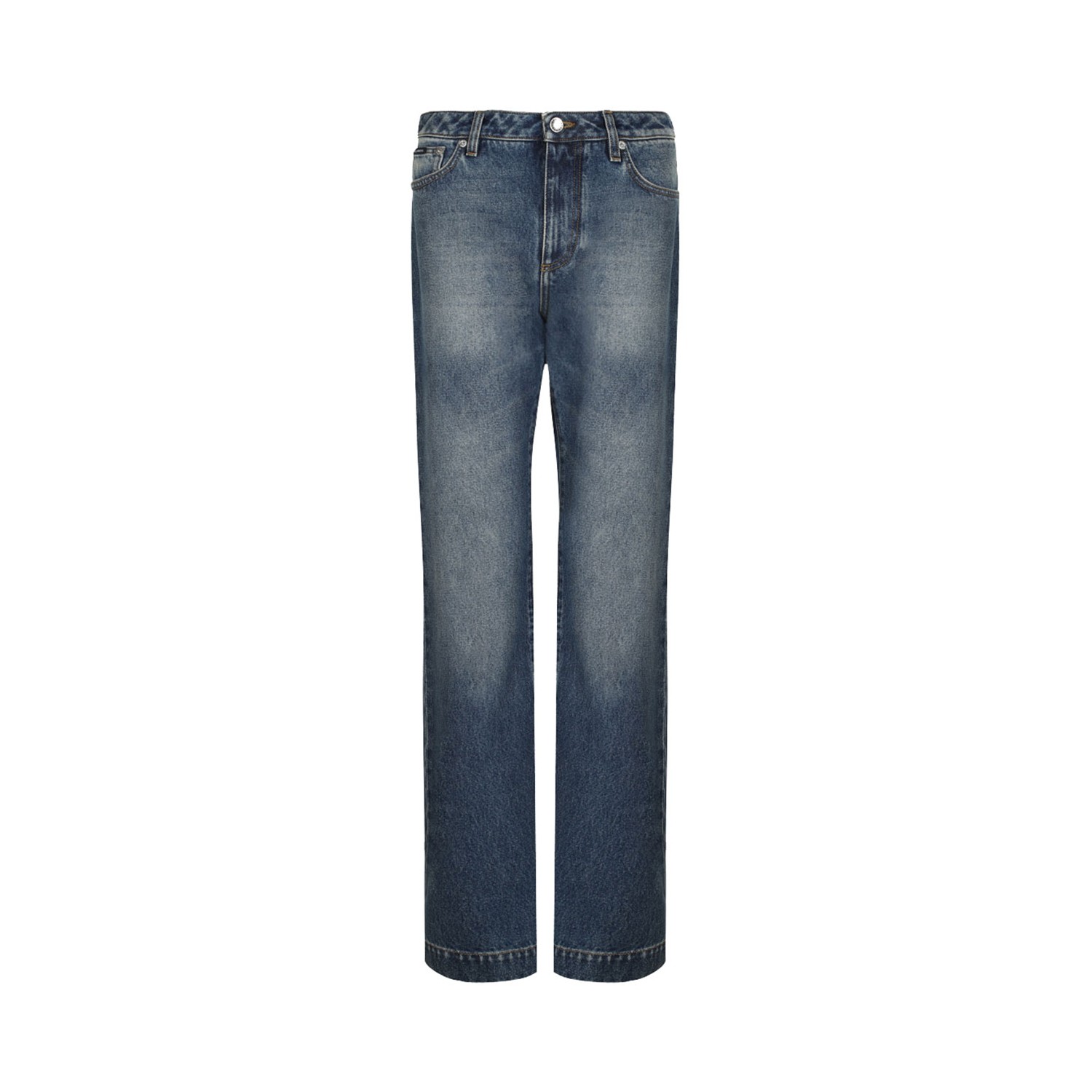 Dolce & Gabbana Blue Washed Jeans. Blue cotton washed jeans with mid-rise waist, belt loops and button fly.
