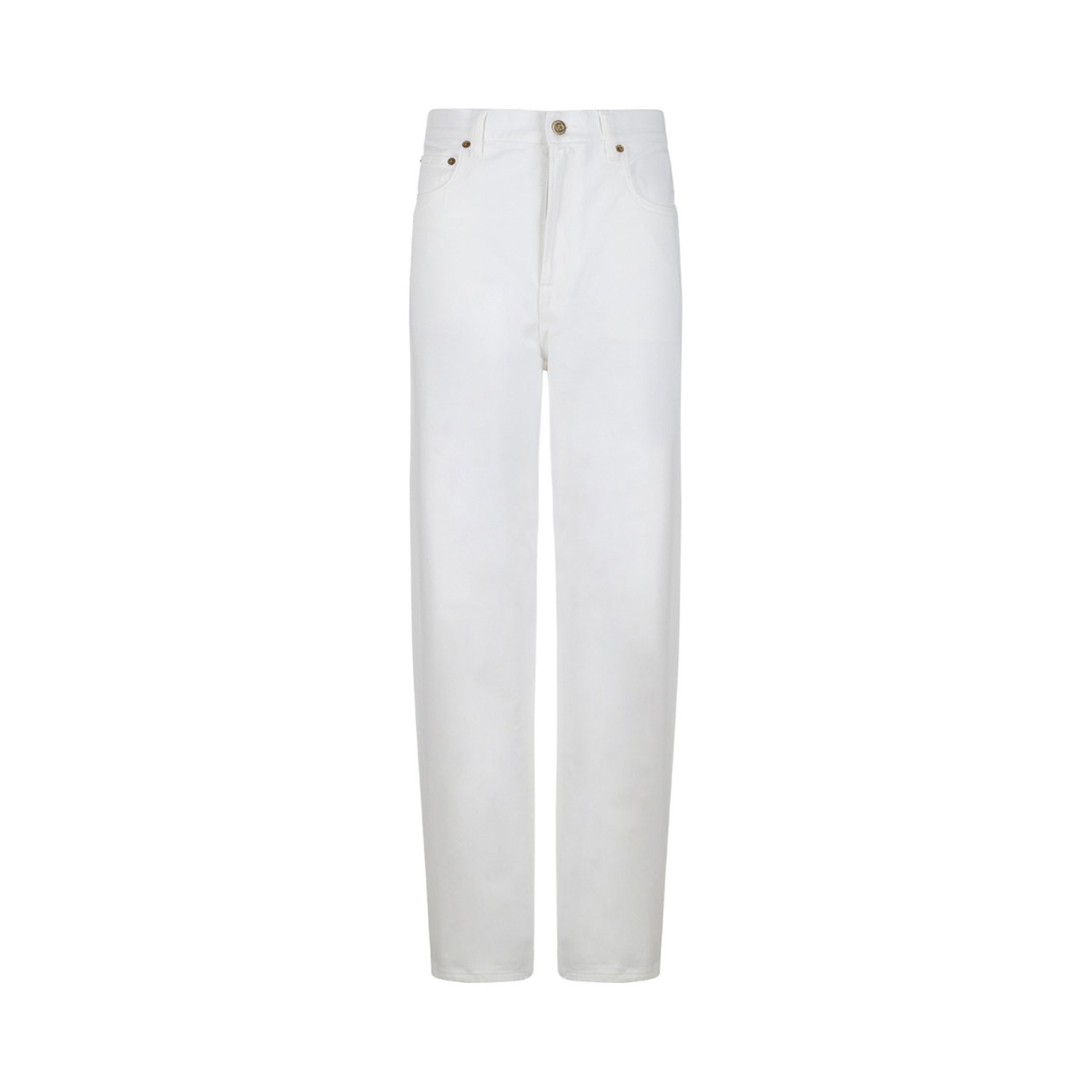 Golden Goose White Straight Leg Jeans. White cotton denim jeans, concealed fly and button fastening, high-waisted, belt loops. Rivet detailing, classic five pockets, star stud embellishment and straight leg.