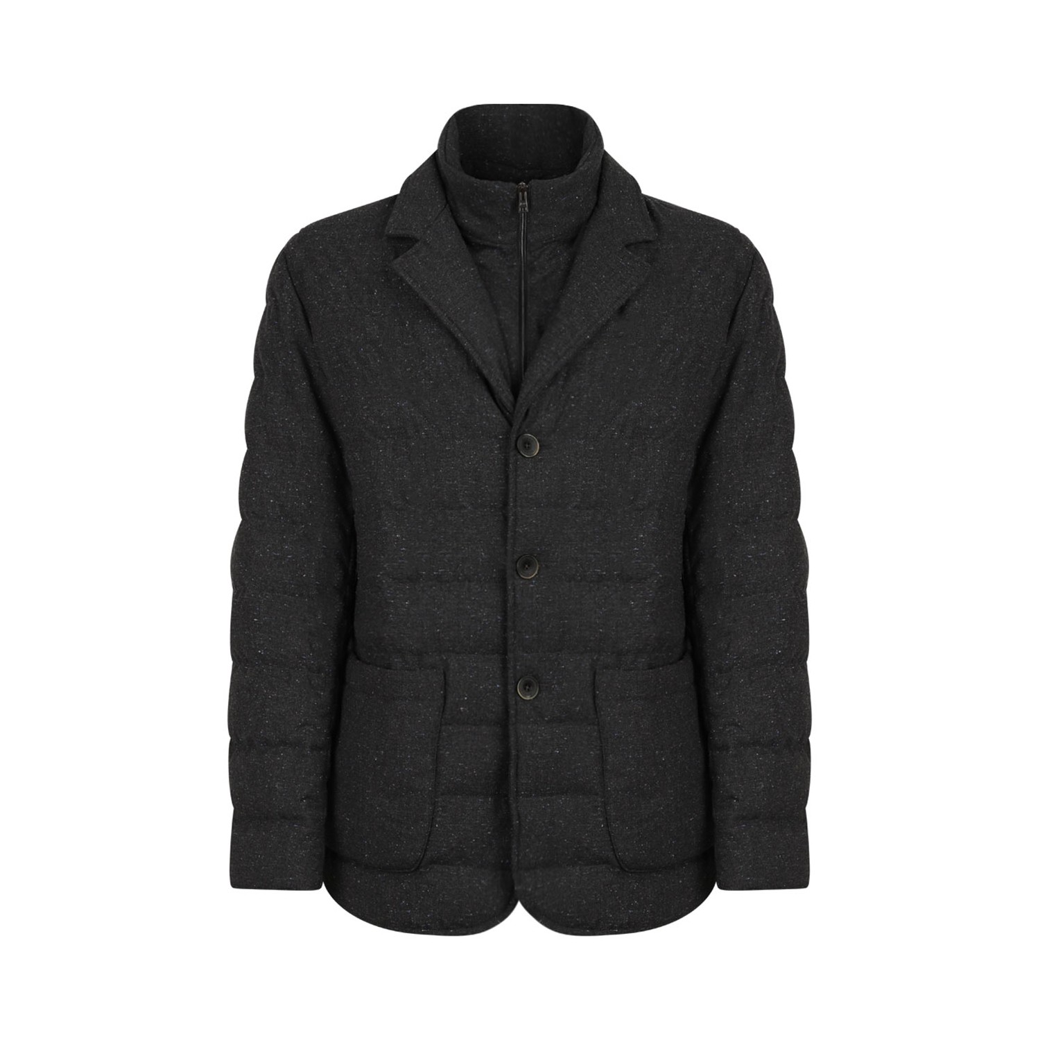 Herno Grey Quilted Jacket. Grey quilted design jacket with four button fastening, patch pockets, high neck and wool blend.