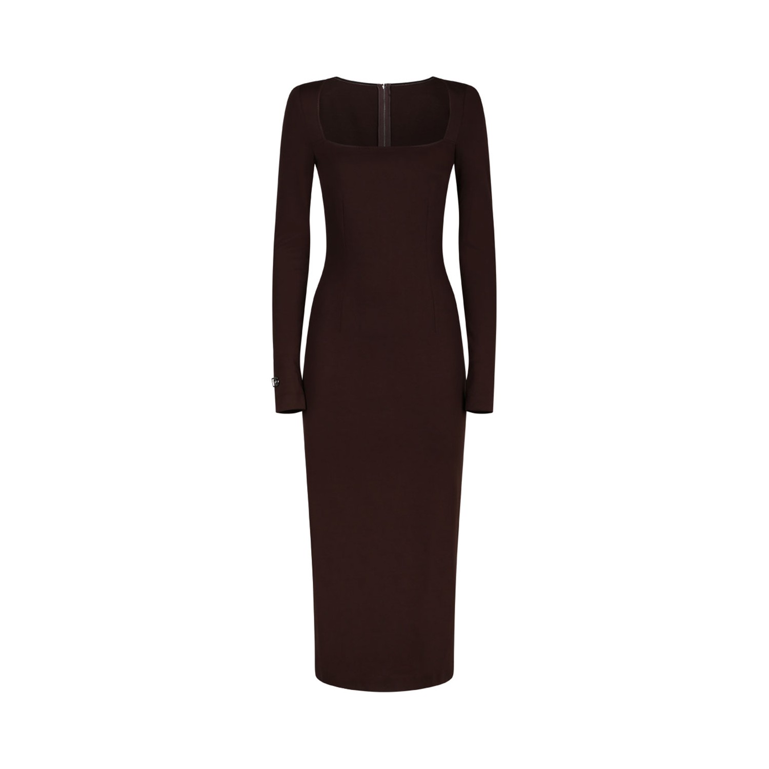 Dolce & Gabbana Dark Brown Jersey Midi Dress. Dark brown stretch jersey midi dress, square neck, long sleeves, concealed rear zip fastening, mid length.