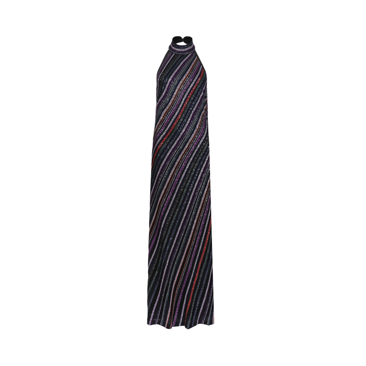 Missoni Multicolour Long Dress With Halter Neck. Multicolour long sleeveless dress with halter neckline, striped shirt, foil and sequins.