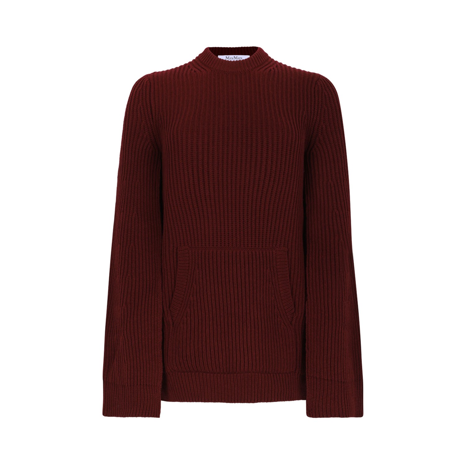 Max Mara Raspberry Wool And Cashmere Cape Dress. Raspberry short knitted dress, featuring a cape-like construction with deep slits under the sleeves that leave the arms uncovered. Dress in wool and cashmere yarn, worked in English rib, flared line, choker.