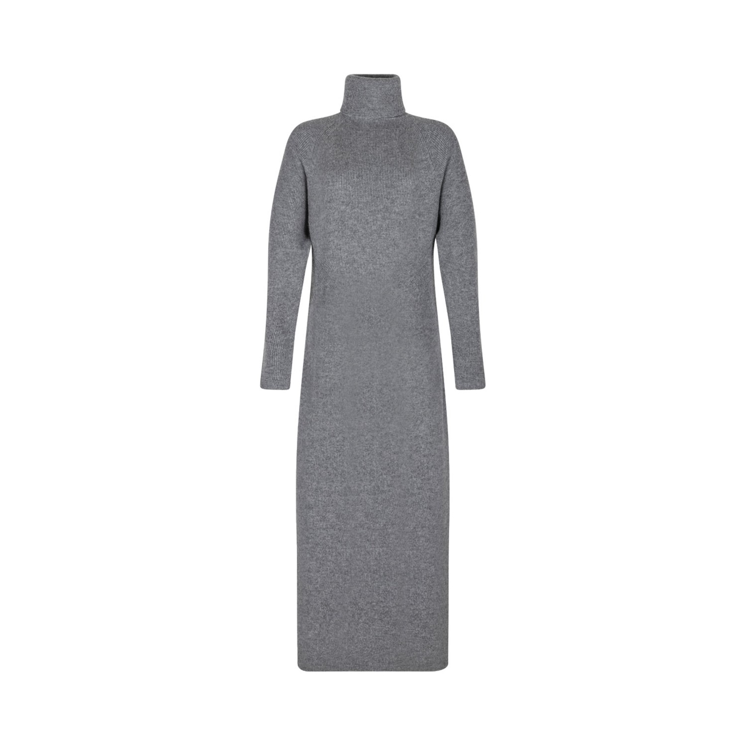 Golden Goose Melange Grey Long Dress. Melange grey wool long dress, high neck, double star on the back, raglan sleeves, side slits, polo neck, fit over.