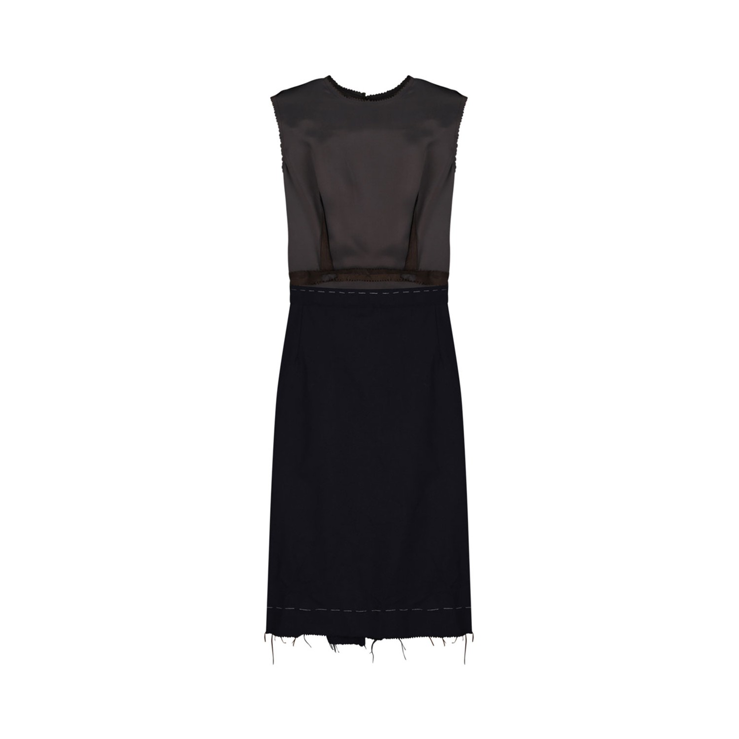 Maison Margiela Blue and Chocolate Panelled Midi Dress. Blue and chocolate panelled midi dress with rear zip fastening, sleeveless, inside-out effect seams and contrast stitching.