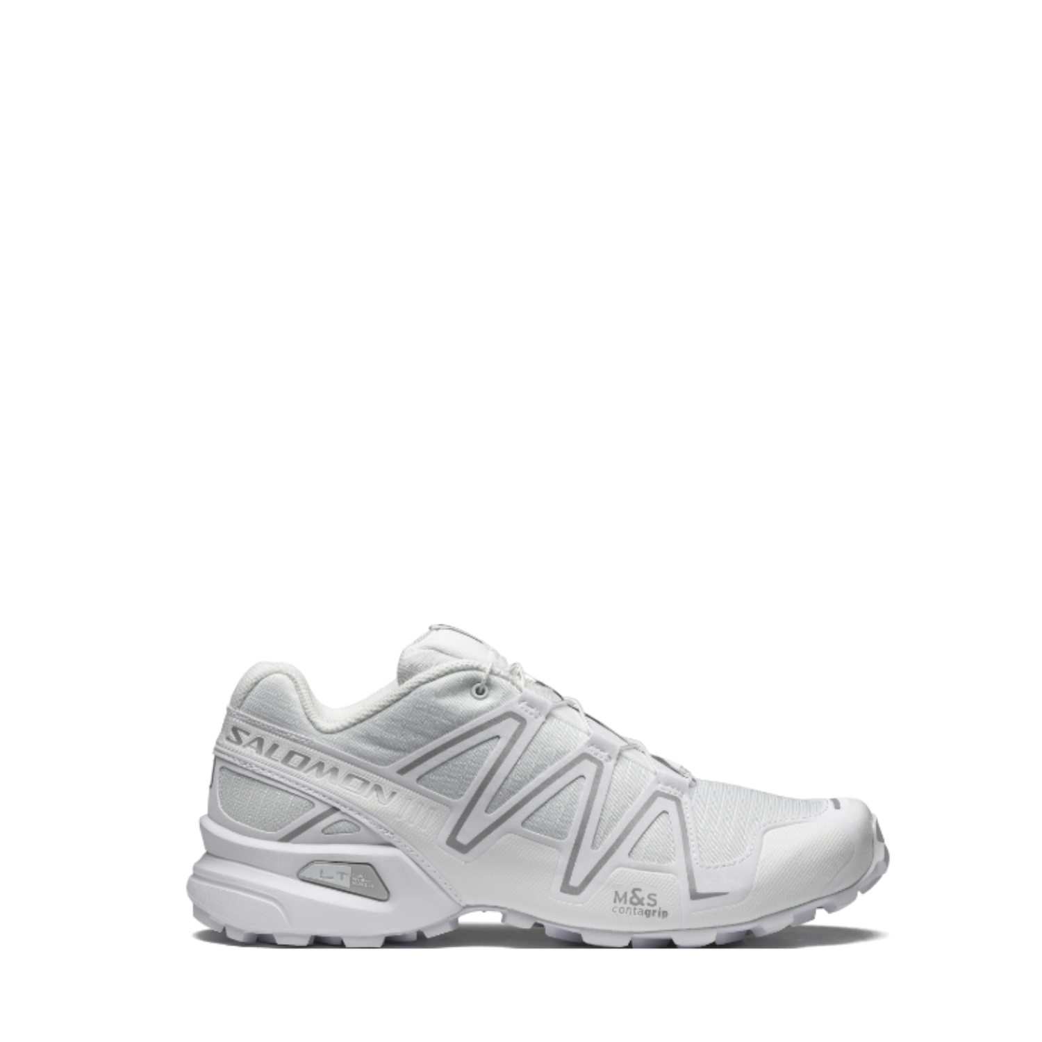 Salomon White Ftw/Silver SPEEDCROSS 3 Sneakers. The Speedcross 3, Salomon’s most iconic shoe, brings a burst of energy to city streets with its vibrant colors and instantly recognizable aggressive tread pattern, delivering an unmatched look, as always.