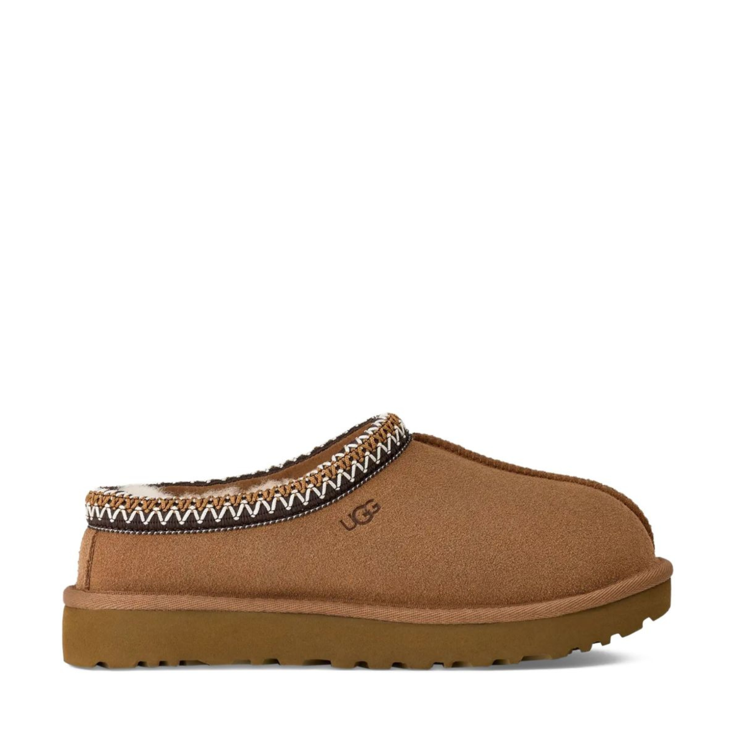 UGG Chesnut Tasman II Slippers. The UGG Tasman II slides reinterpret a classic from the brand with a modern and sustainable twist. Featuring the signature slip-on silhouette, they're crafted from suede with a soft UGGplush wool lining. Comfortable, warm, and versatile, their sturdy outsole makes them perfect for both indoor and outdoor wear.