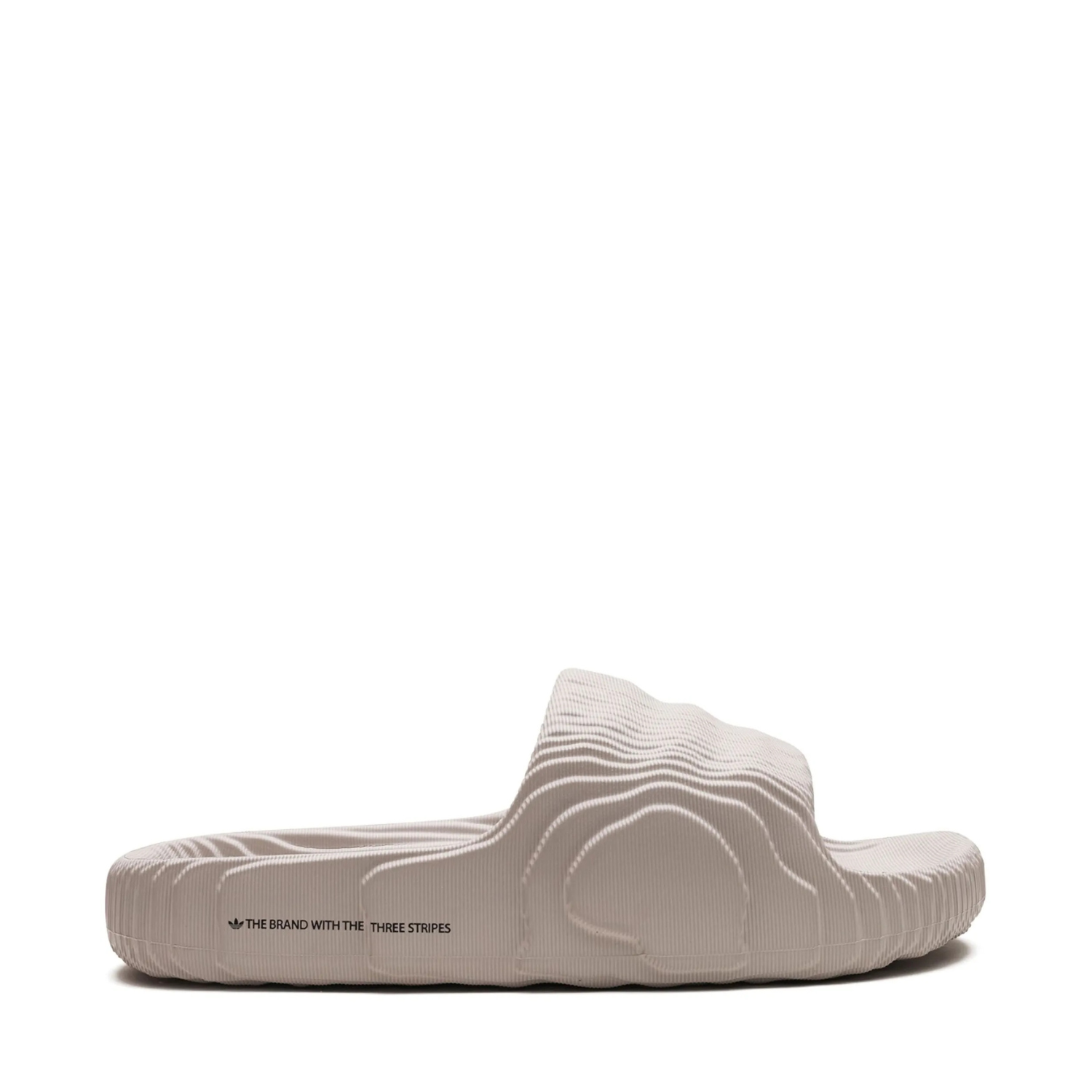 Adidas Adilette 22 Light Brown Slides. Representing a topographic map of Mars, these wavy-textured Adilette 22 slides from adidas contain natural and renewable materials, such as sugar cane, reflecting the brand's conscious approach. The futuristic design is built with a wide strap and moulded footbed for a comfortable fit.