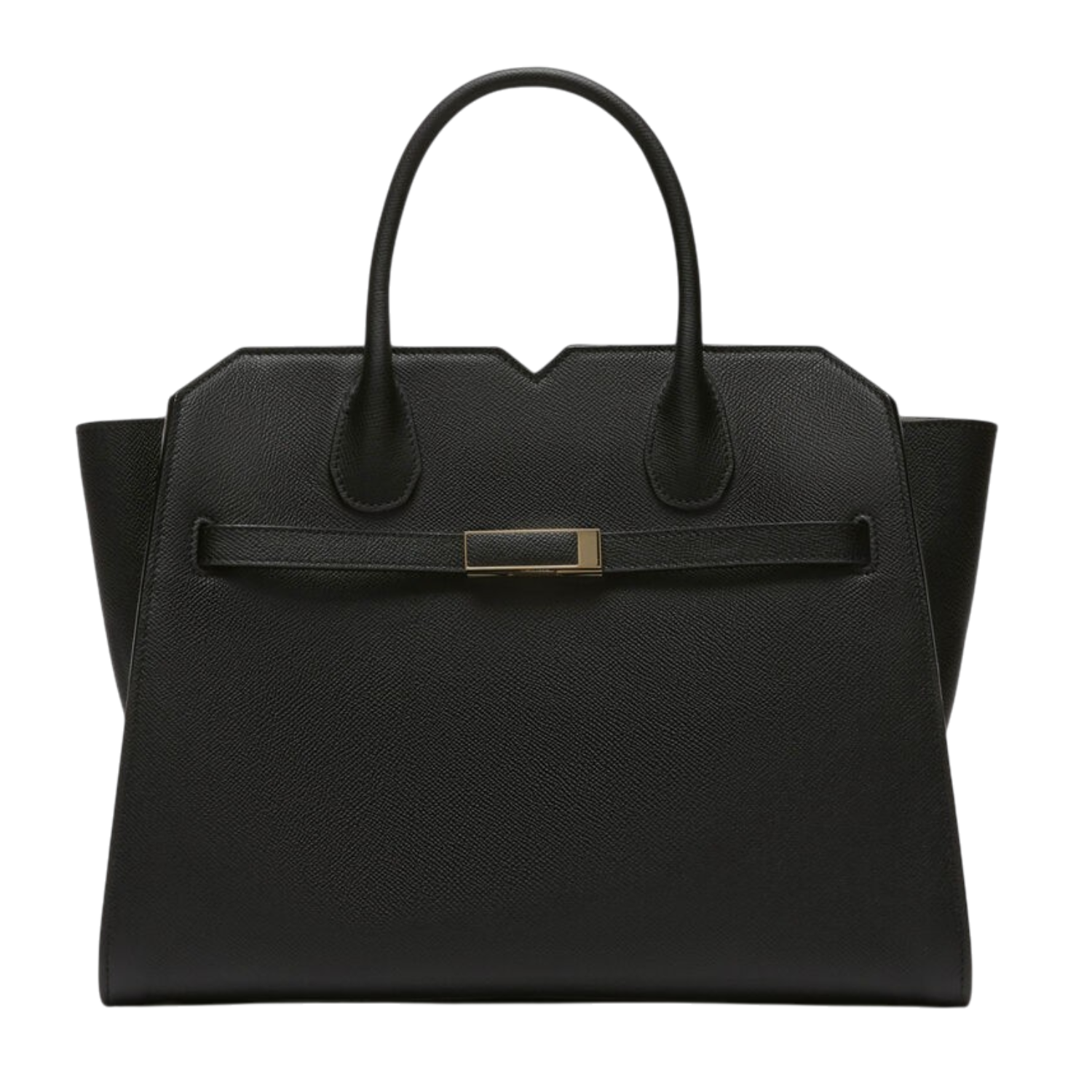Valextra Milano Medium Two-Handle Bag. The Milano double-handle bag is the ideal ally, seven days a week. It suggests impeccable elegance, thanks to a structured design embellished with refined signature details, such as the V-notch on the top. The soft touch of the Millepunte Soft calfskin in Black makes it spacious and versatile when worn. Inside it has the right space to store both small personal effects and laptops and large devices. By applying the shoulder strap, it becomes a casual shoulder-bag, which adds lightness to your pace.