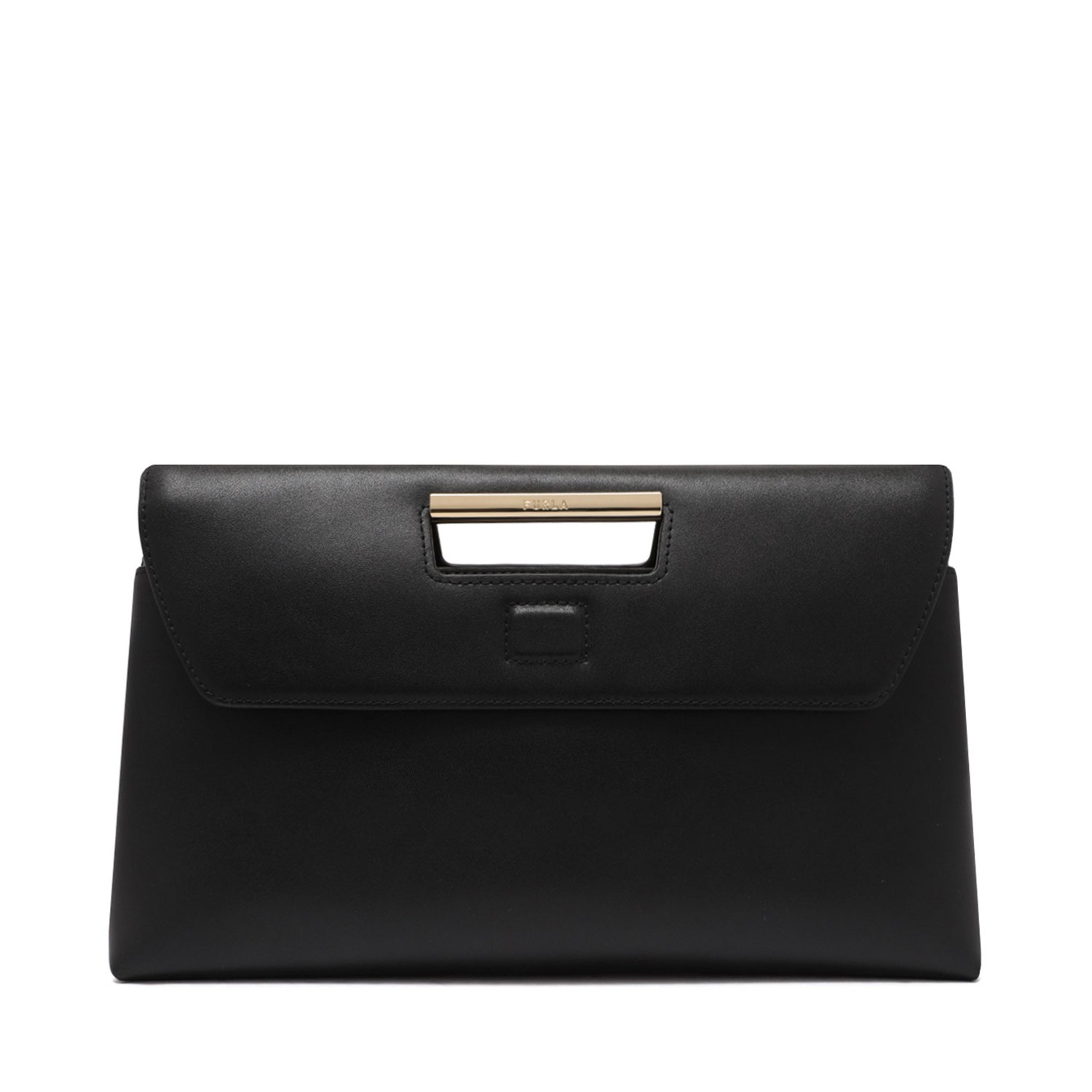 Furla Giada Black Pouch. Crafted from premium smooth leather, the Furla Giada pouch is the epitome of elegance. In a mini format to hold all your essentials, it stands out for its internal front pocket with flap closure and magnetic button. The model is finished with a sophisticated glossy finish detail customized in the space dedicated to carrying it by hand.