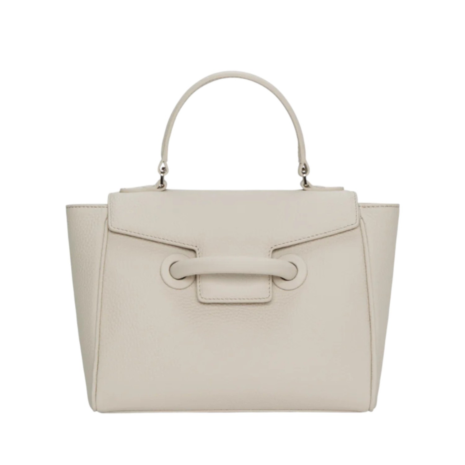 Vasic Muget Ever Mini Bag. Muget leather handle bag with front buckle and branded hardware, reinforced with a hidden metal clasp for secure closure. Lined with an interior zipper pocket and detailed with a long back pocket with snap closure to keep your phone close and secure. Remove the adjustable shoulder strap to carry as a refined handbag.