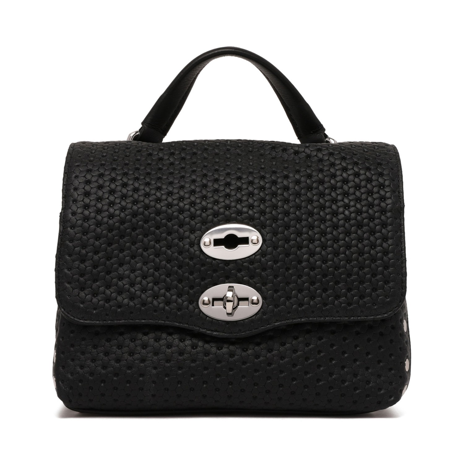 Zanellato Black Perfored Leather Baby Bag. The Postina Zanellato is designed for those who seek iconic accessories without sacrificing practicality. Crafted from perforated leather, the bag features an adjustable leather shoulder strap that allows it to be carried over the shoulder, giving it a unique and playful look.