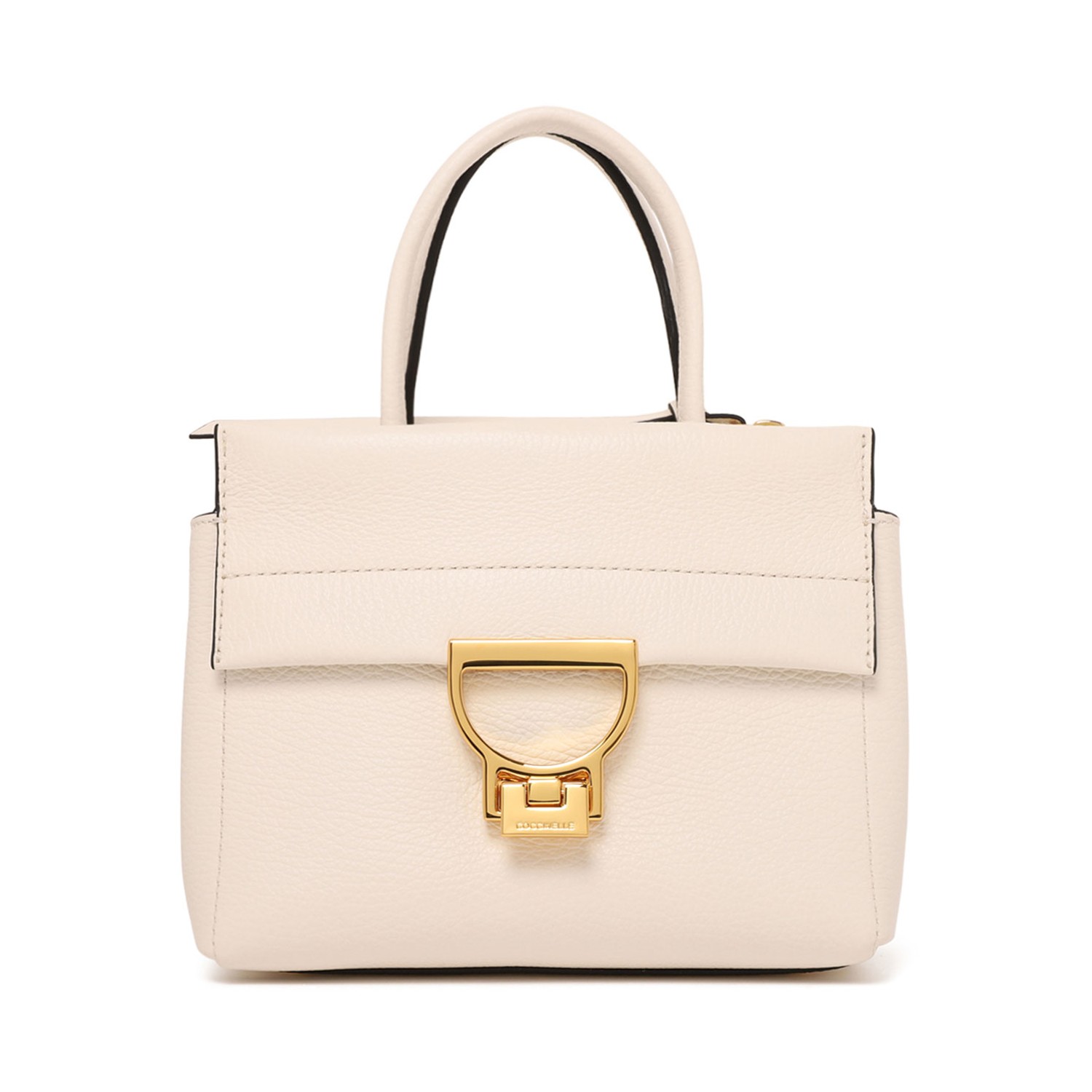 Cocinelle Pearl Genuine Leather Arlettis With Two Handles Bag. Pearl genuine leather bag with two carrying handles, adjustable and detachable shoulder strap, two external pockets, an internal pocket, zip closure, snap and twist button closure, logo.