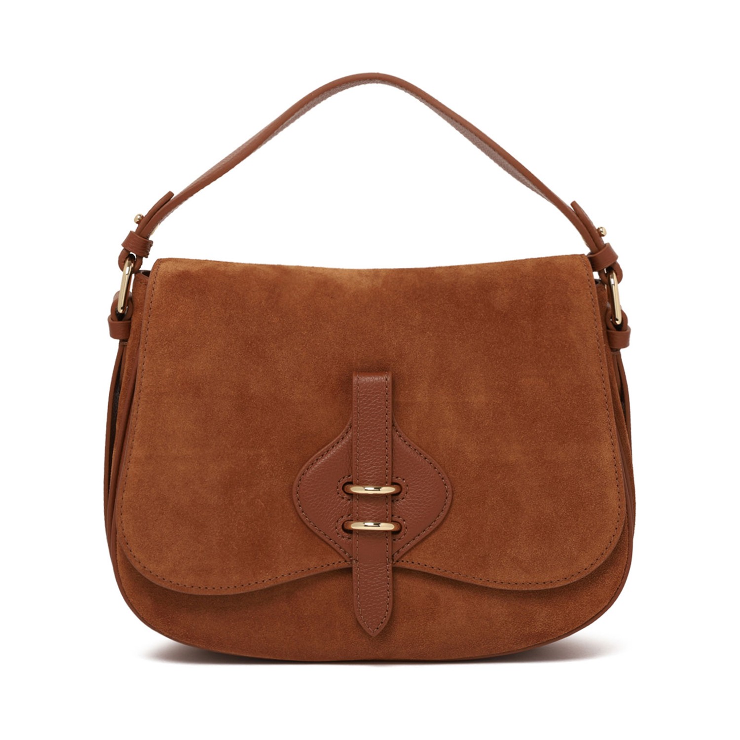Cognac Suede and Micro Grain-Leather Mavery Bag