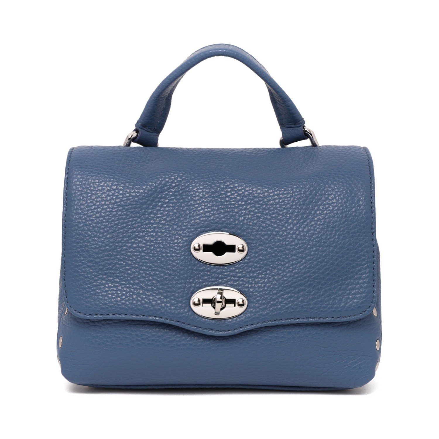 Zanellato Blue Isola D'Elba Postina Baby Bag. Blue Isola D'Elba hammered leather baby bag with adjustable leather shoulder, twist lock, flat handle and single compartment.