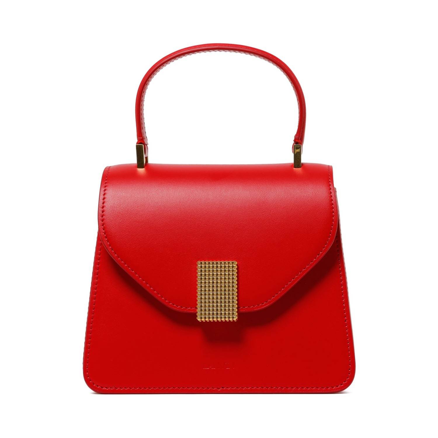 Lanvin Red Concerto Mini Bag. Red leather mini bag, polished finish, foldover top. Gold tone hardware, main compartment, single top handle.
